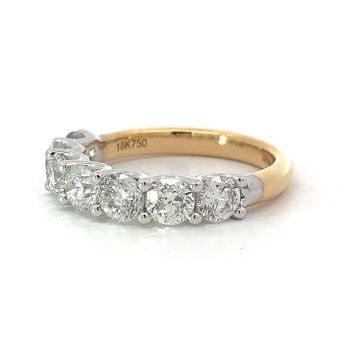 A modern white gold seven stone ring channel set with round cut blue Sapphires and Cubic Zirconia.Metal: 9 Carat White GoldWidth: 3.3 mmCurrent Finger Size: PAs a pre owned item, this ring has been examined and professionally cleaned and polished in our workshop.Gift Boxed