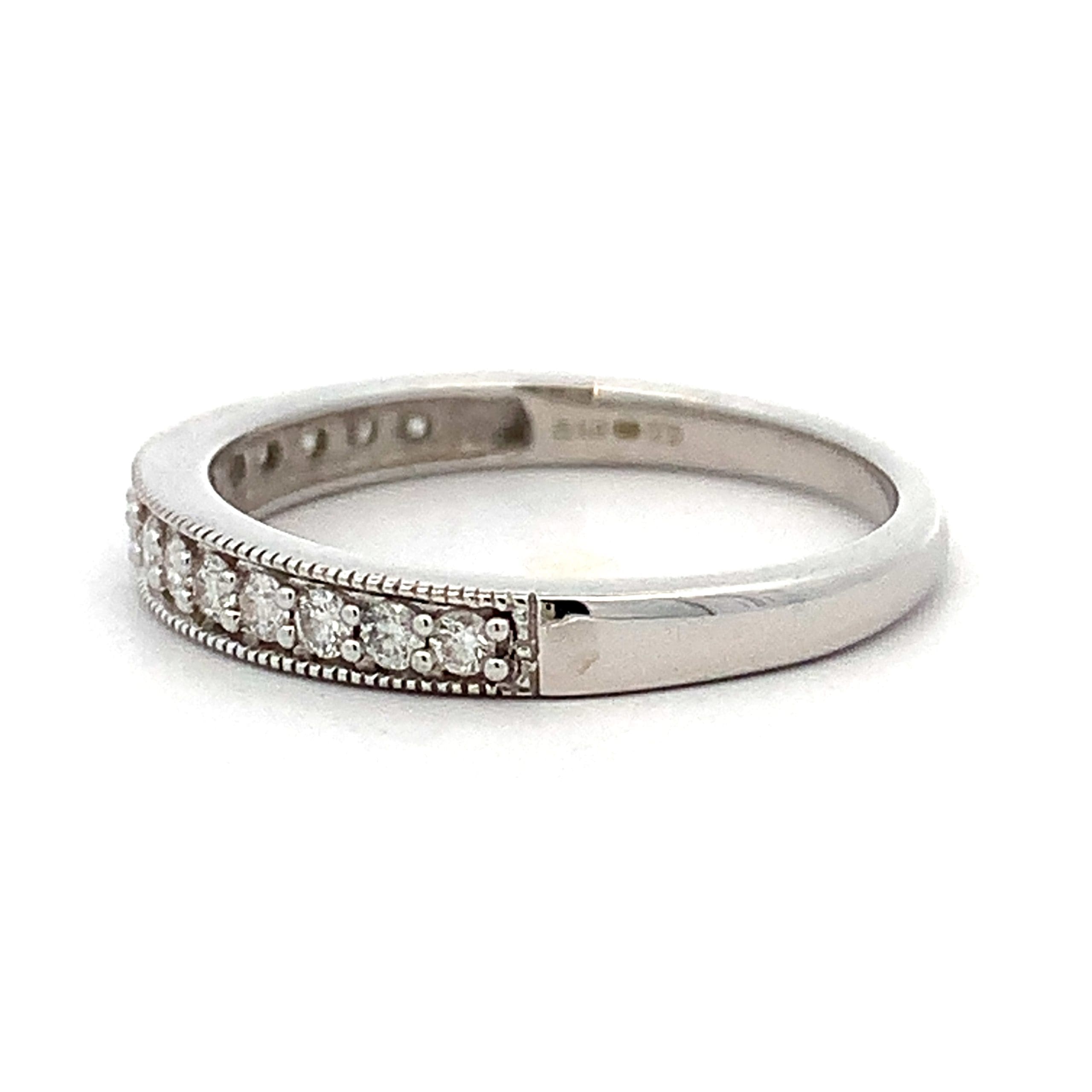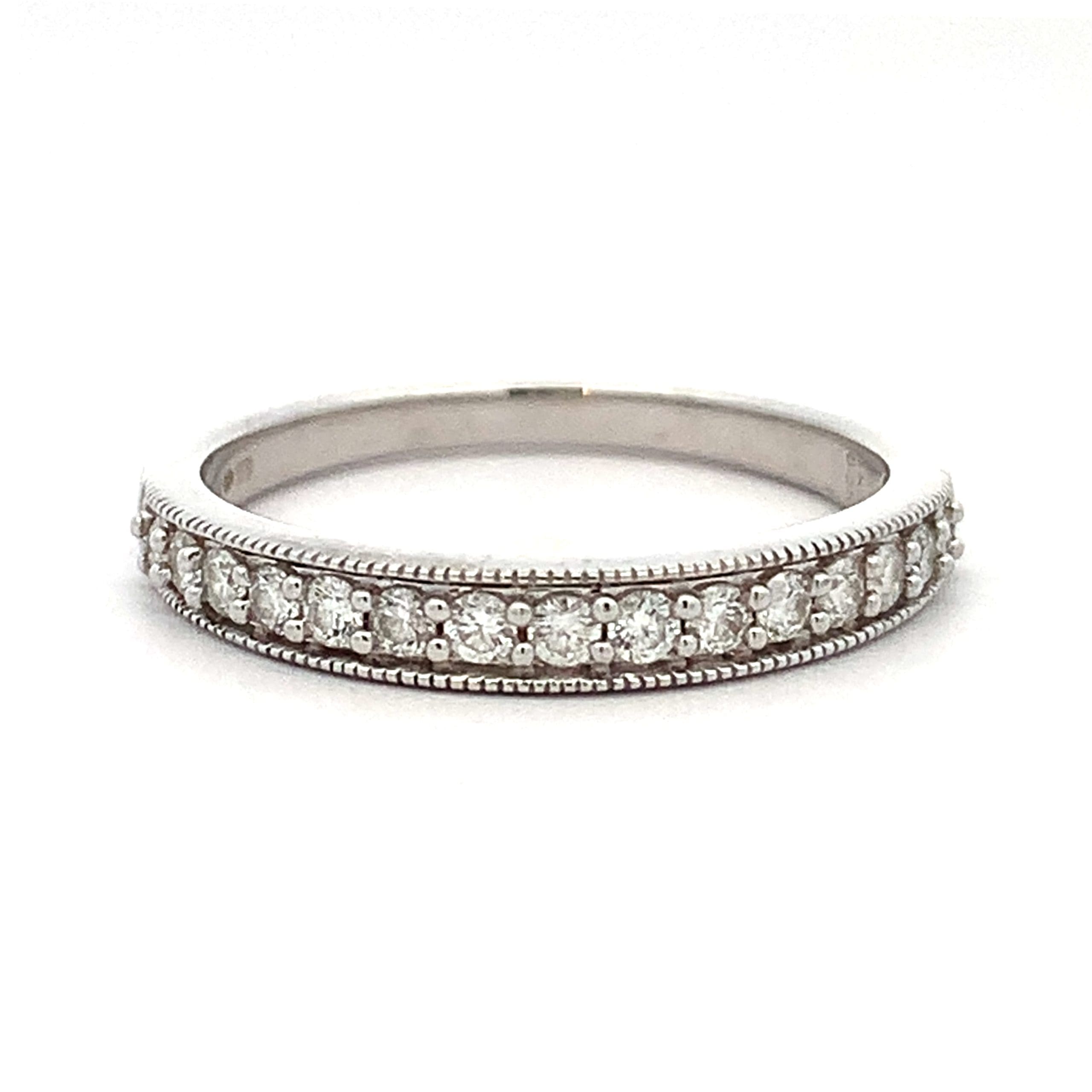 A pretty milgrain edge eternity ring, grain set with bright round brilliant cut diamond. In very good condition.