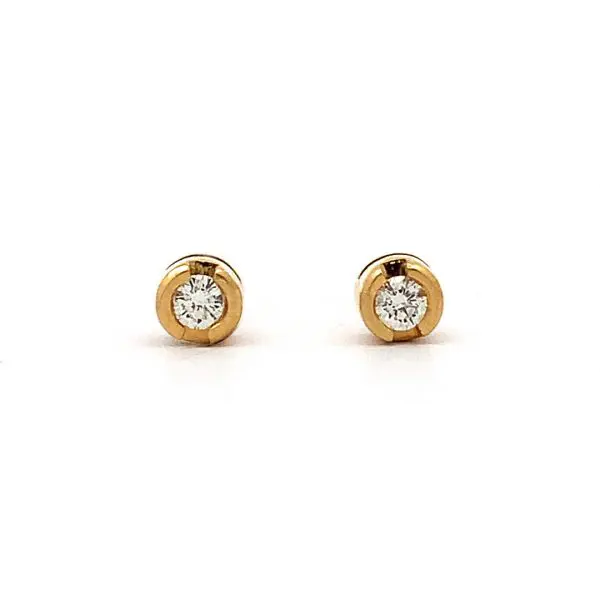 18 carat yellow gold studs set with sparkling round brilliant cut diamonds. With double click posts and scroll backs.