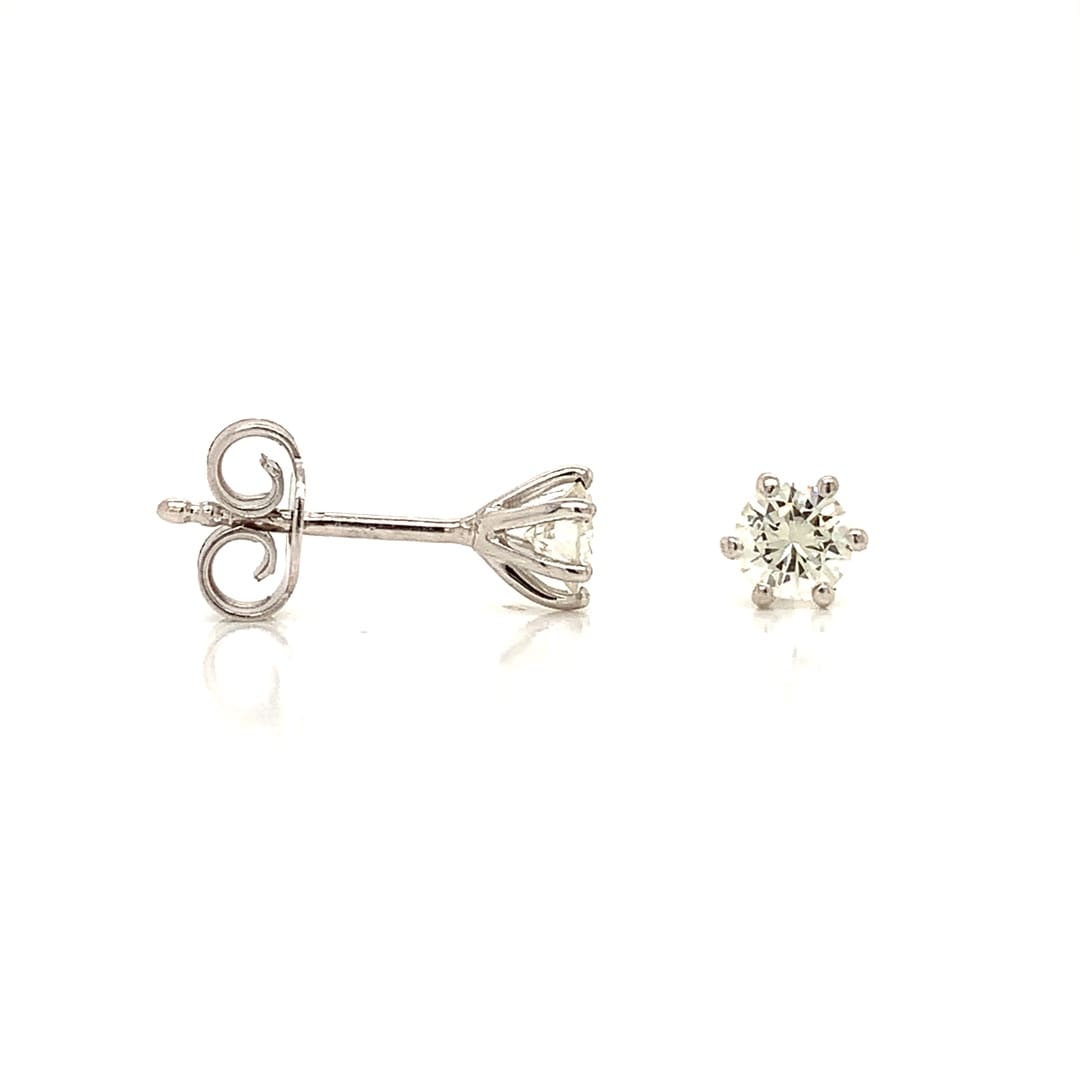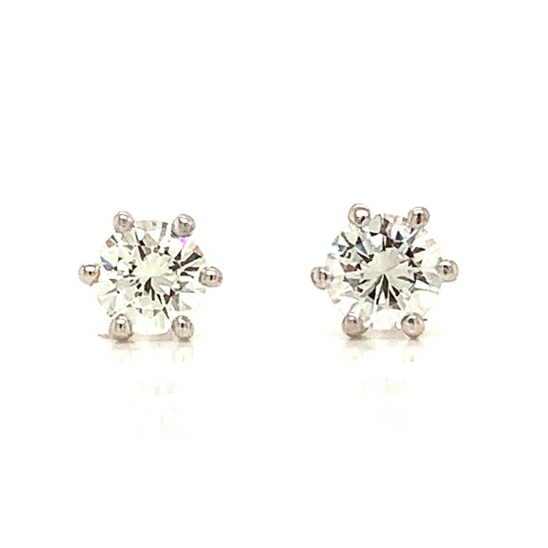 Sparkling six claw stud earrings set with bright round brilliant cut diamonds.  Fitted with double click posts and secure scroll backs.