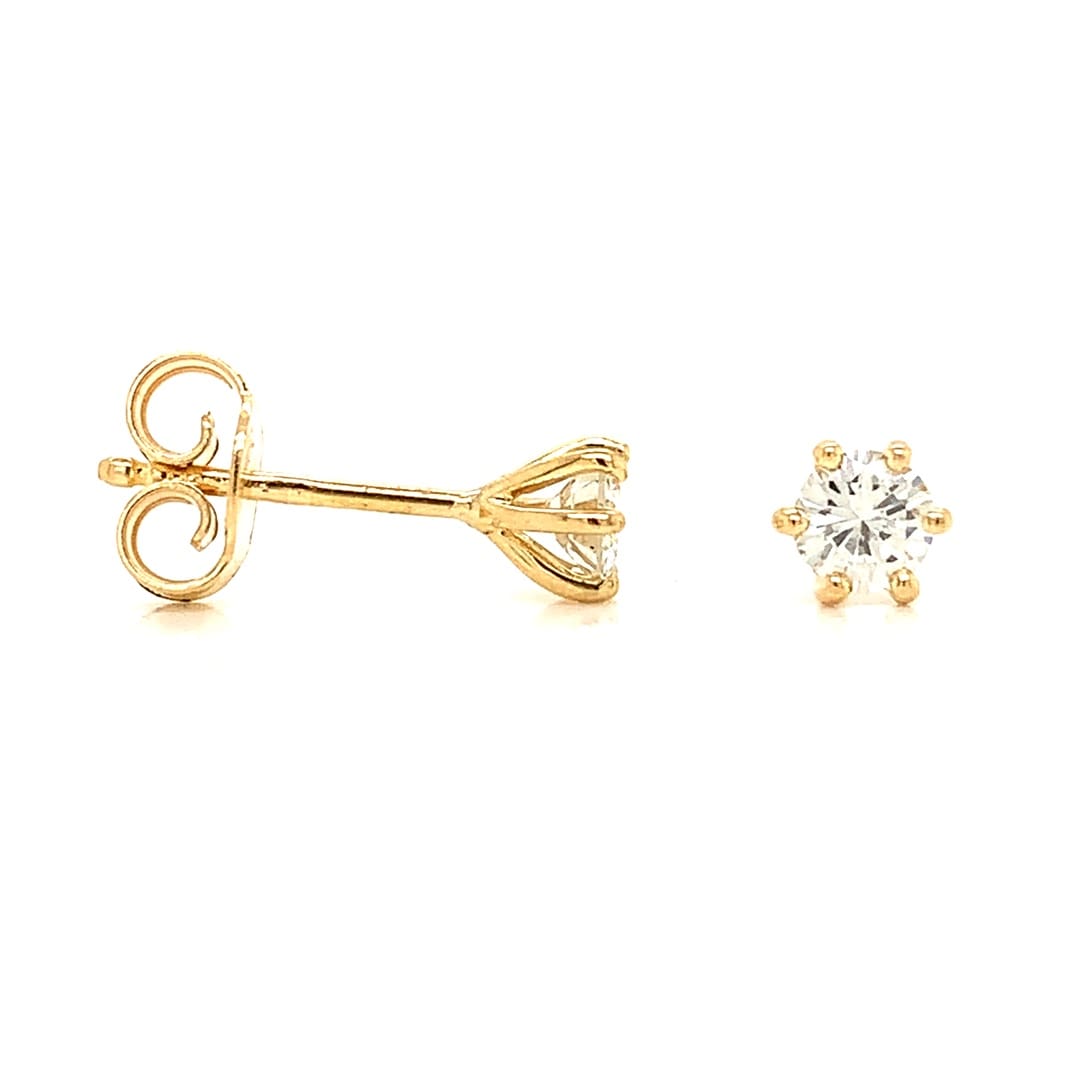 Sparkling six claw stud earrings set with bright round brilliant cut diamonds. Fitted with double click posts and secure scroll backs.