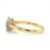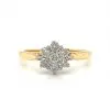 A pretty yellow gold diamond cluster ring claw set with round cut diamonds on a traditional split shoulder ring shank.