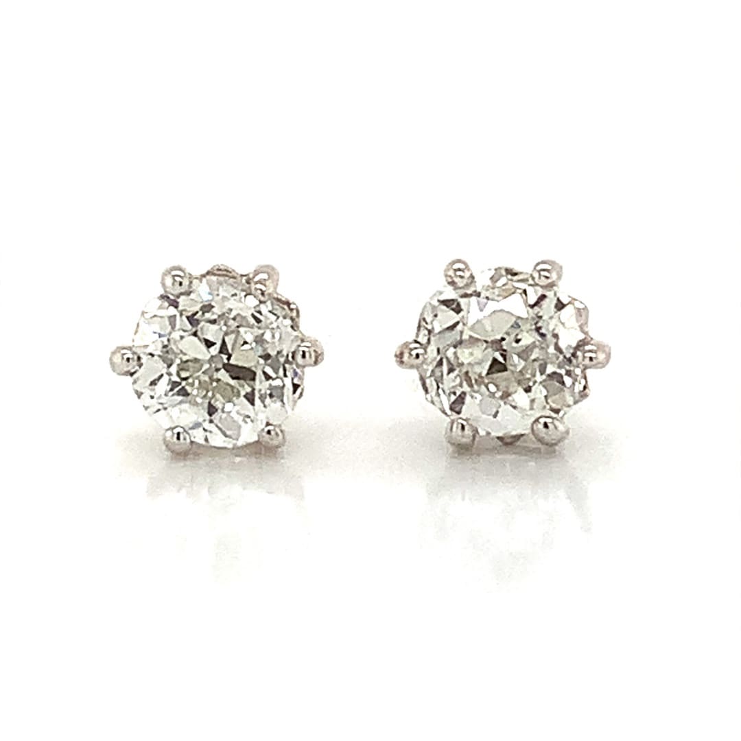Beautiful old cut diamonds in six claw white gold studs with a lotus style undersetting. Perfect for everyday wear.