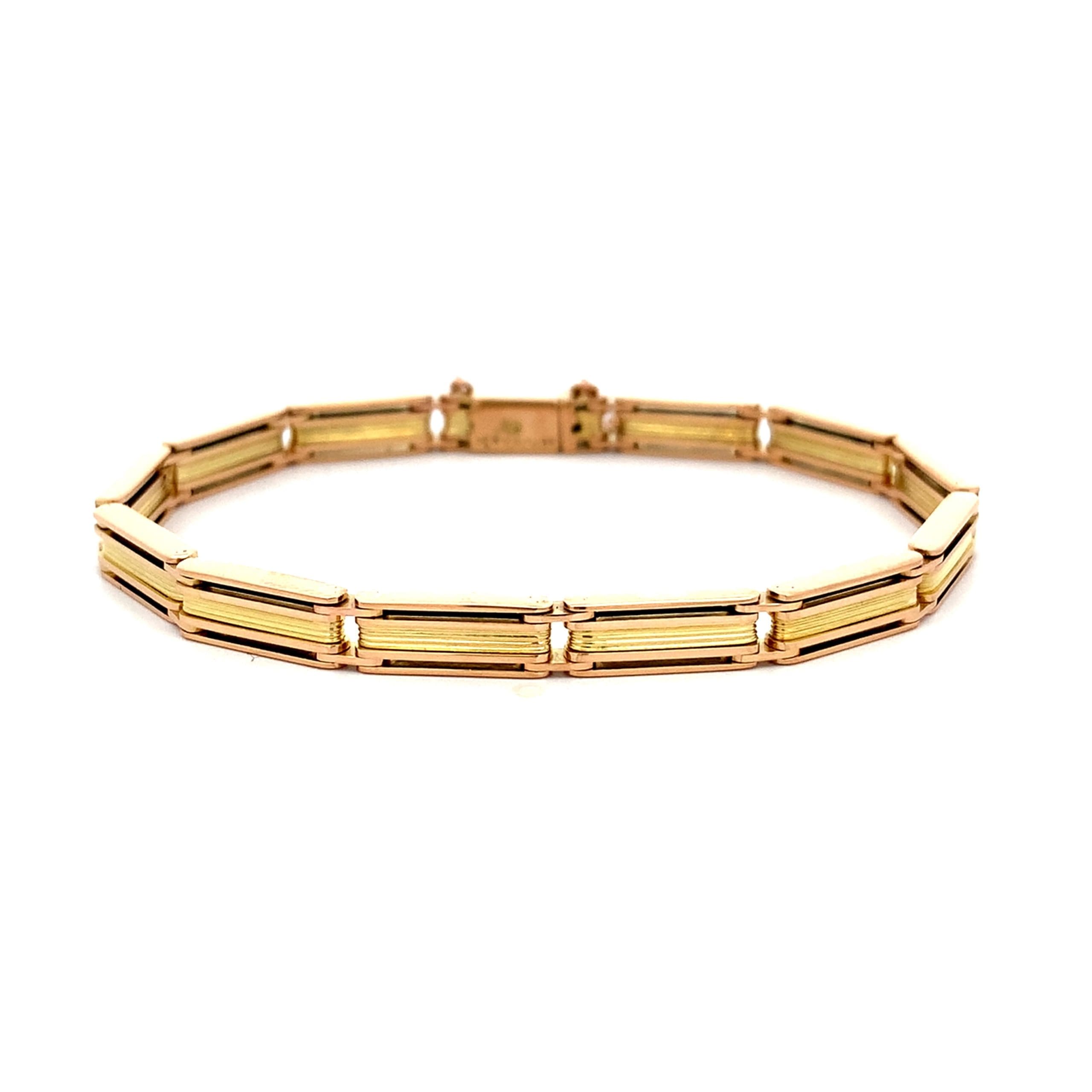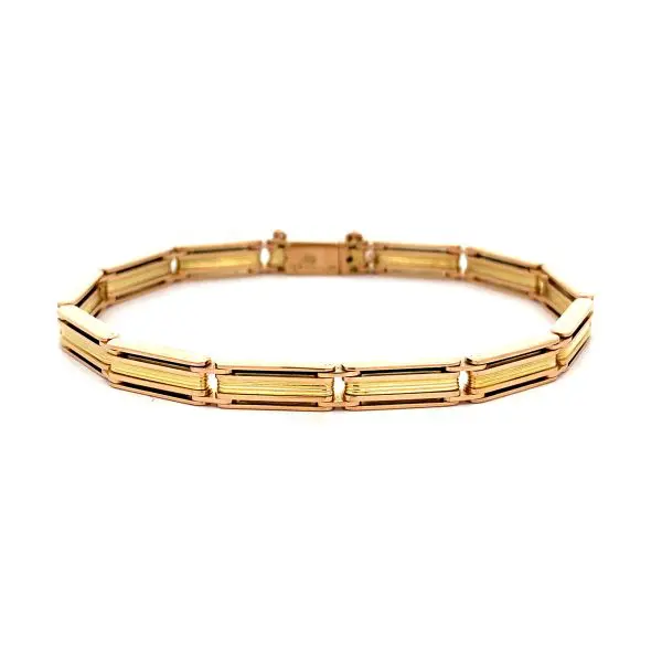 A beautifully made bracelet with smooth gate style links. With a box clasp and safety chain.