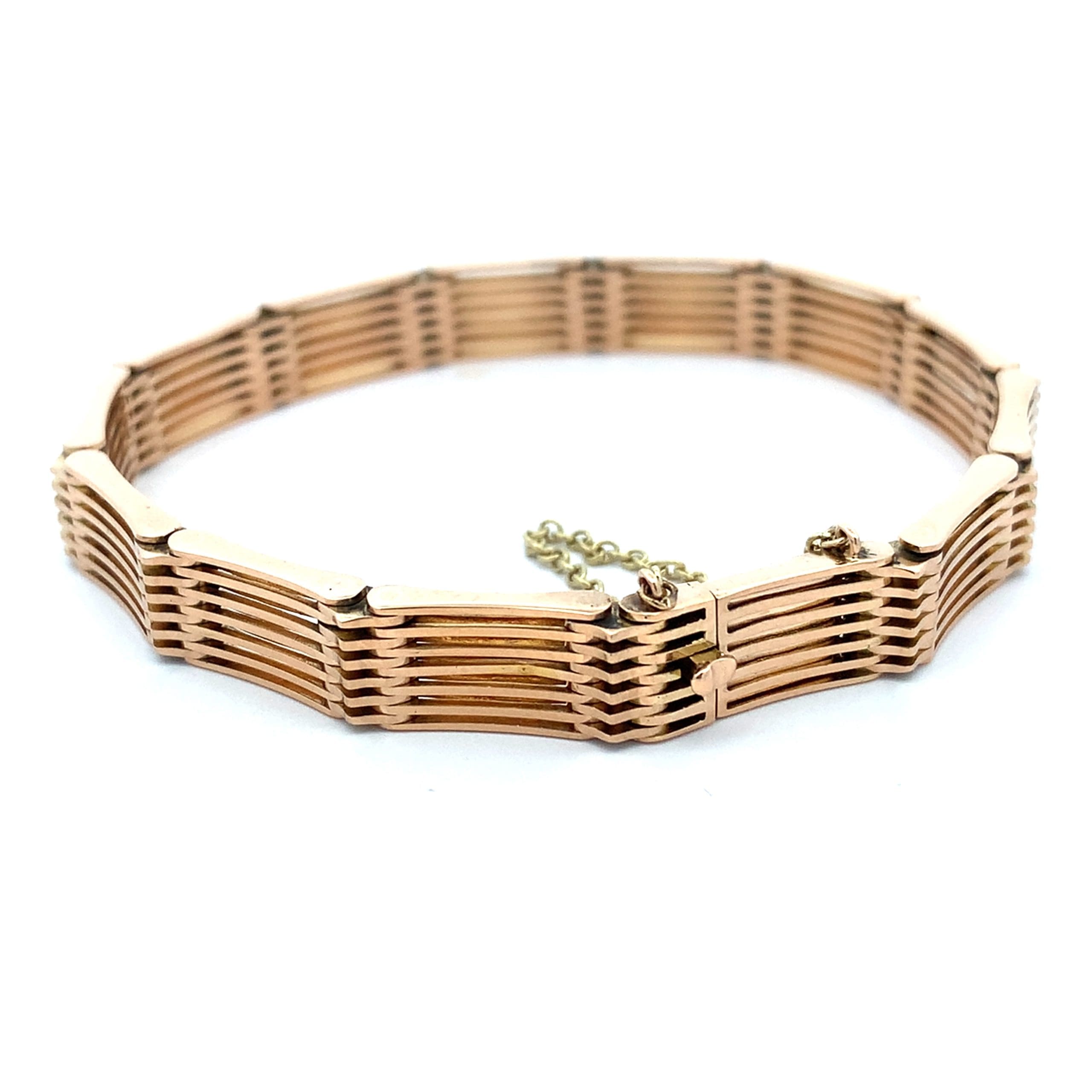 A superb bracelet with smooth gate style links. Made with a box clasp and safety chain.