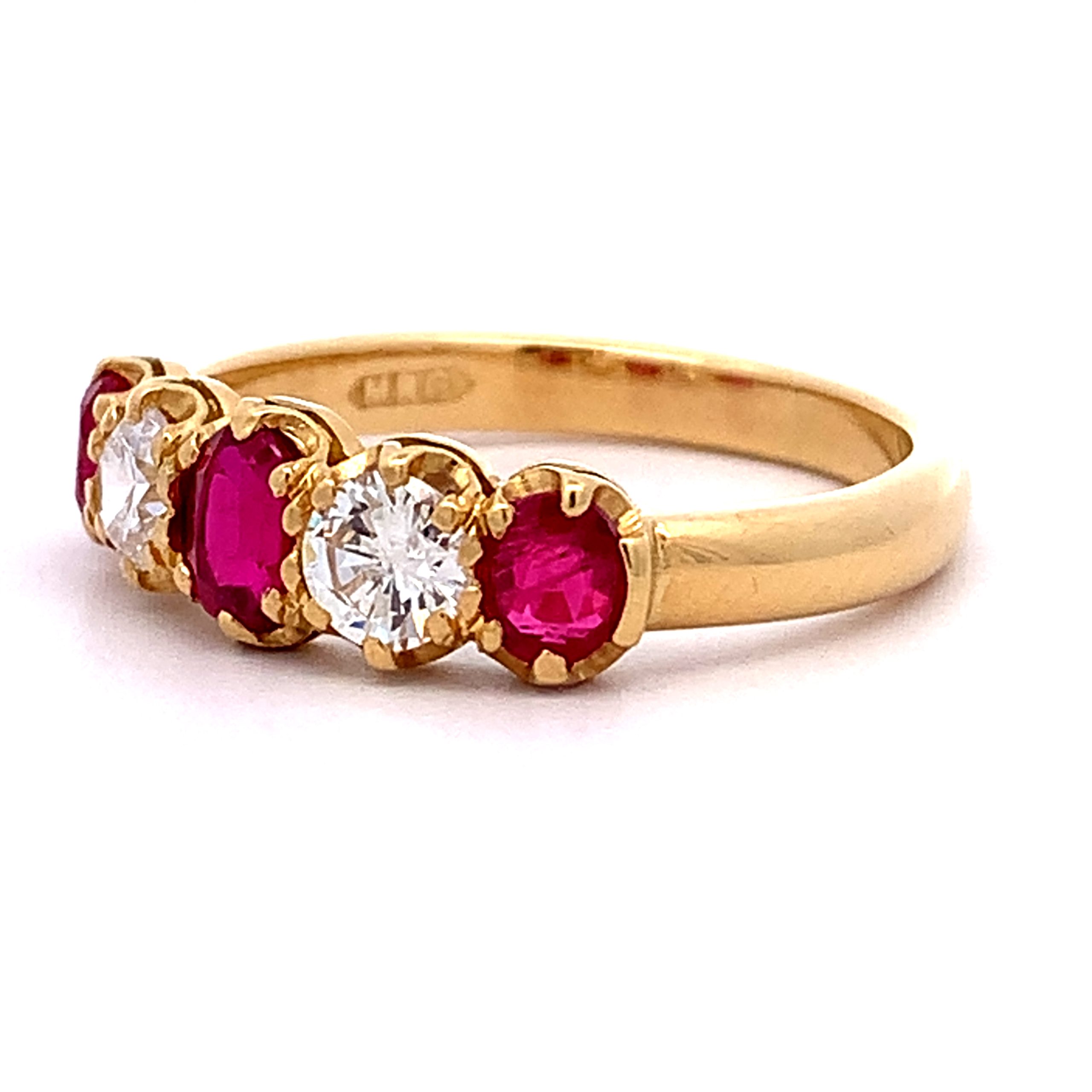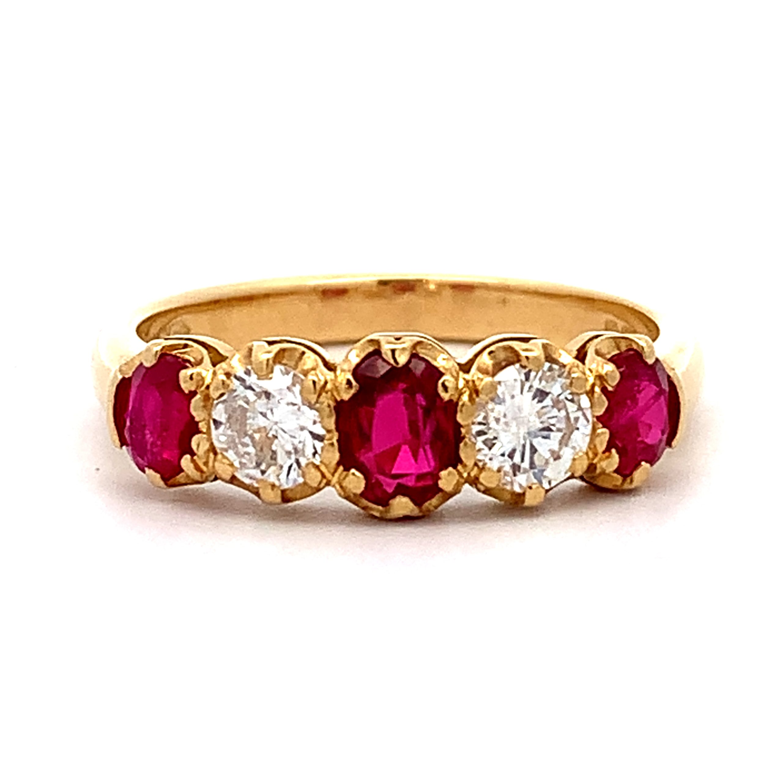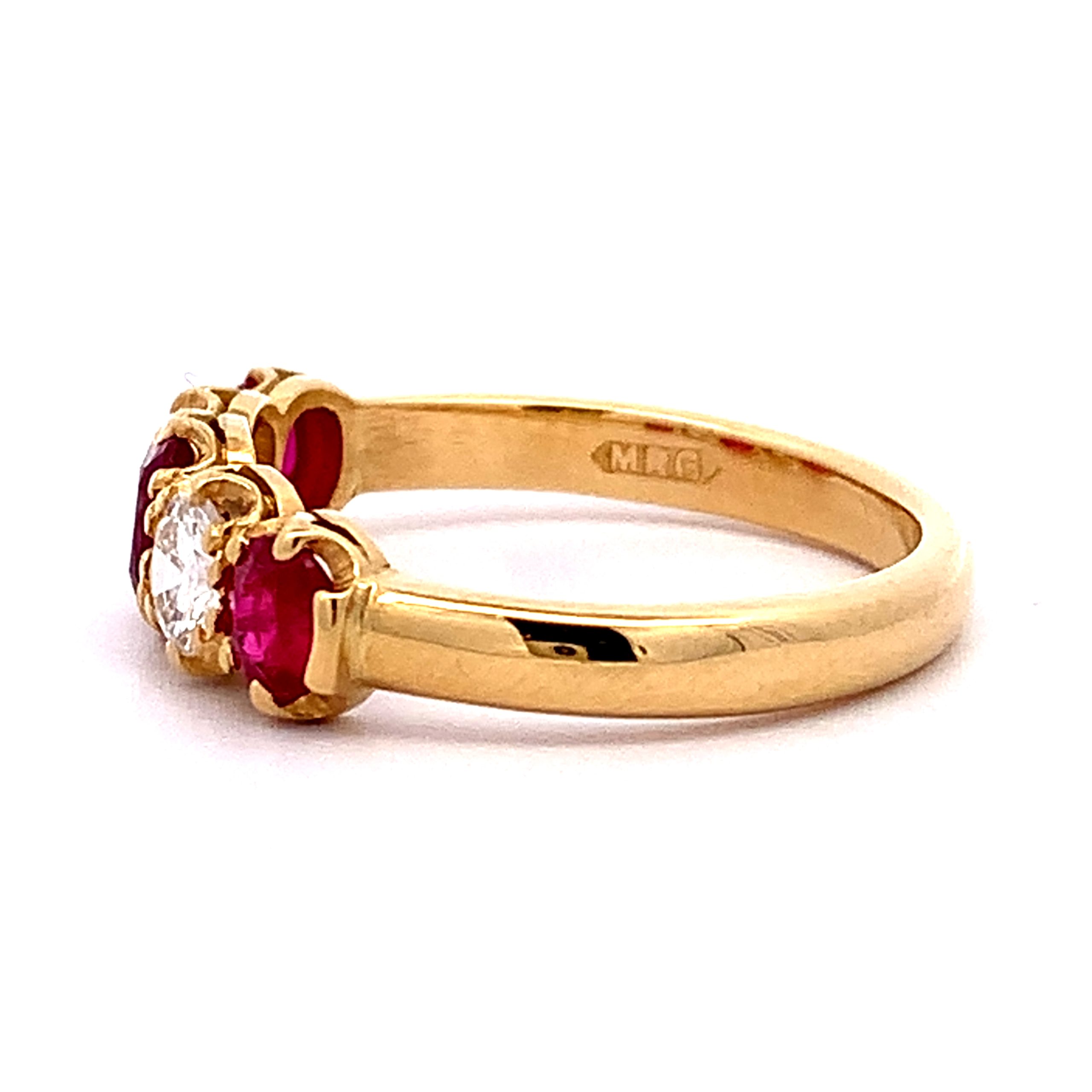 A stunning claw set ring with richly coloured oval cut ruby and bright round brilliant cut diamond.