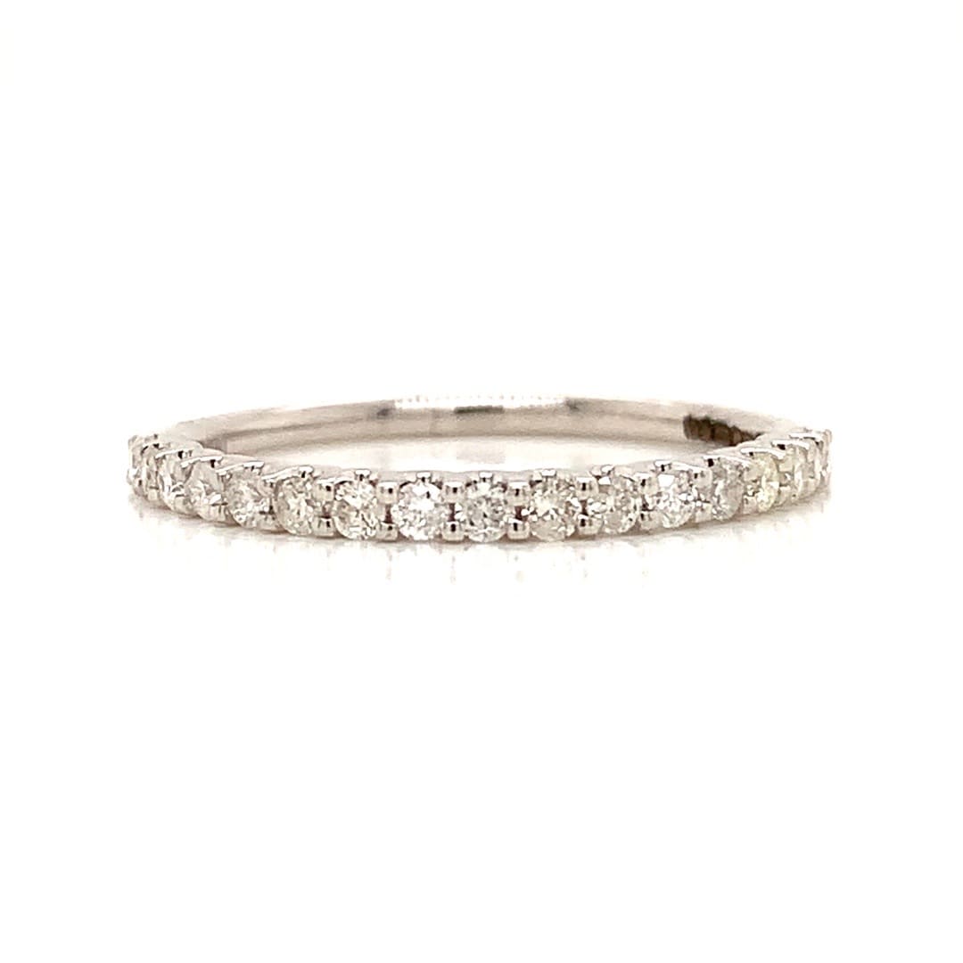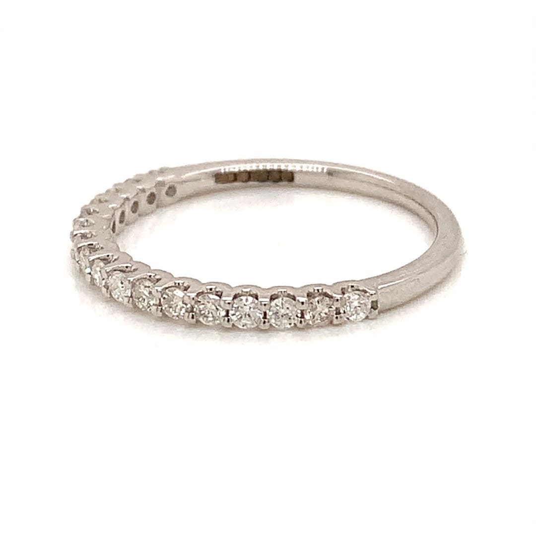 A fine eternity ring half set with brilliant cut diamonds in a pretty white gold scalloped setting.