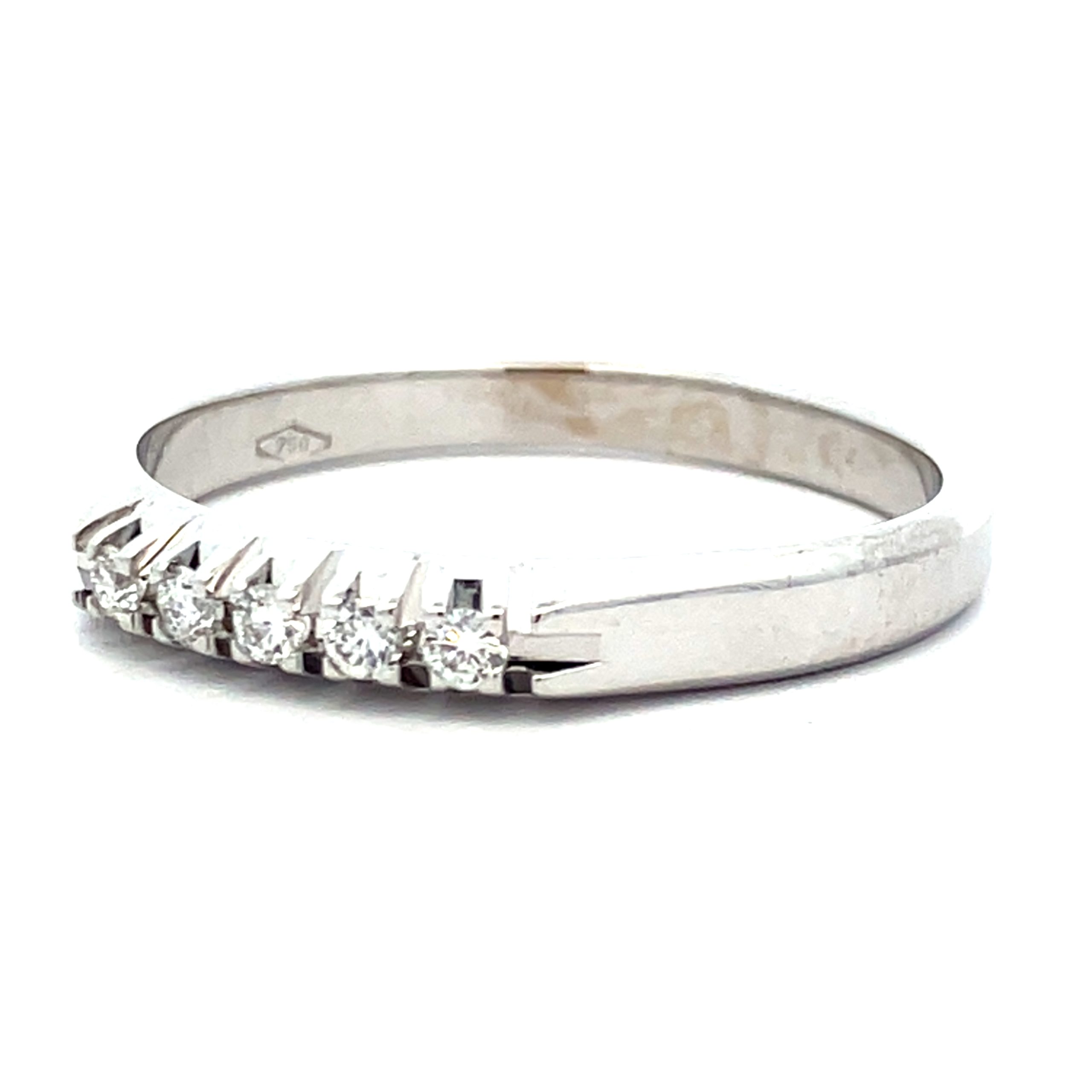 A solidly made modern band style ring claw with round brilliant cut diamond.  With very good colour and clarity diamonds.
