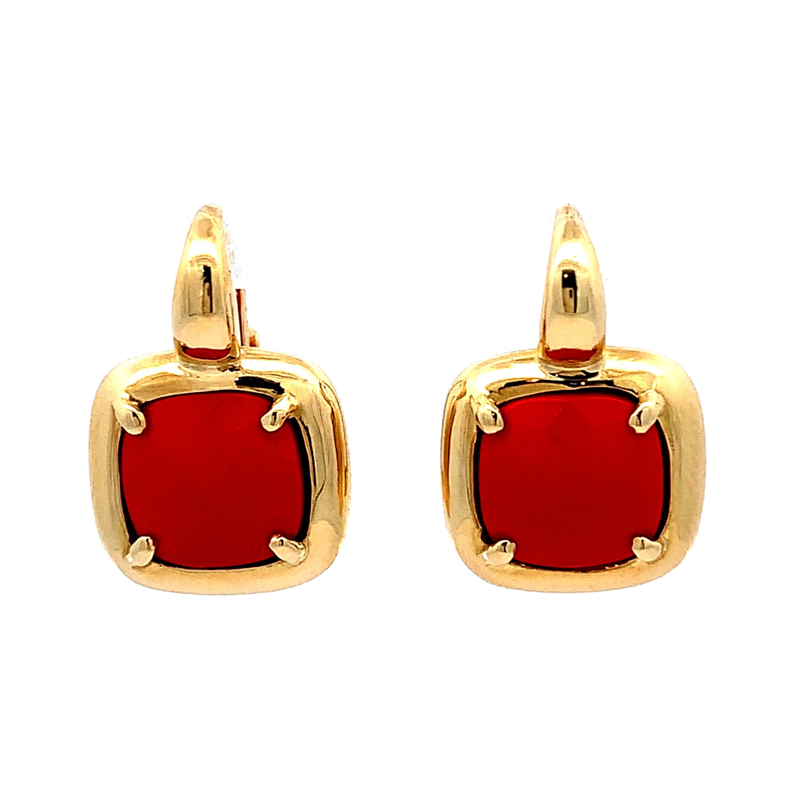 Smooth chunky drop earrings set with coral cabochons.  Made with continental fittings.