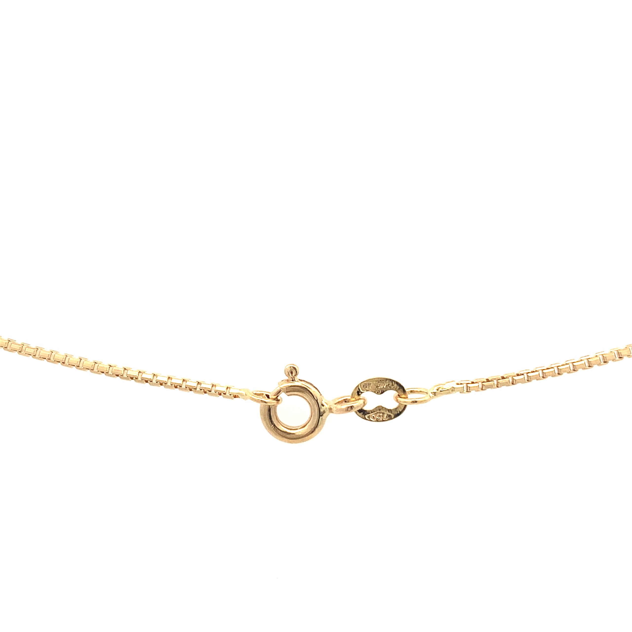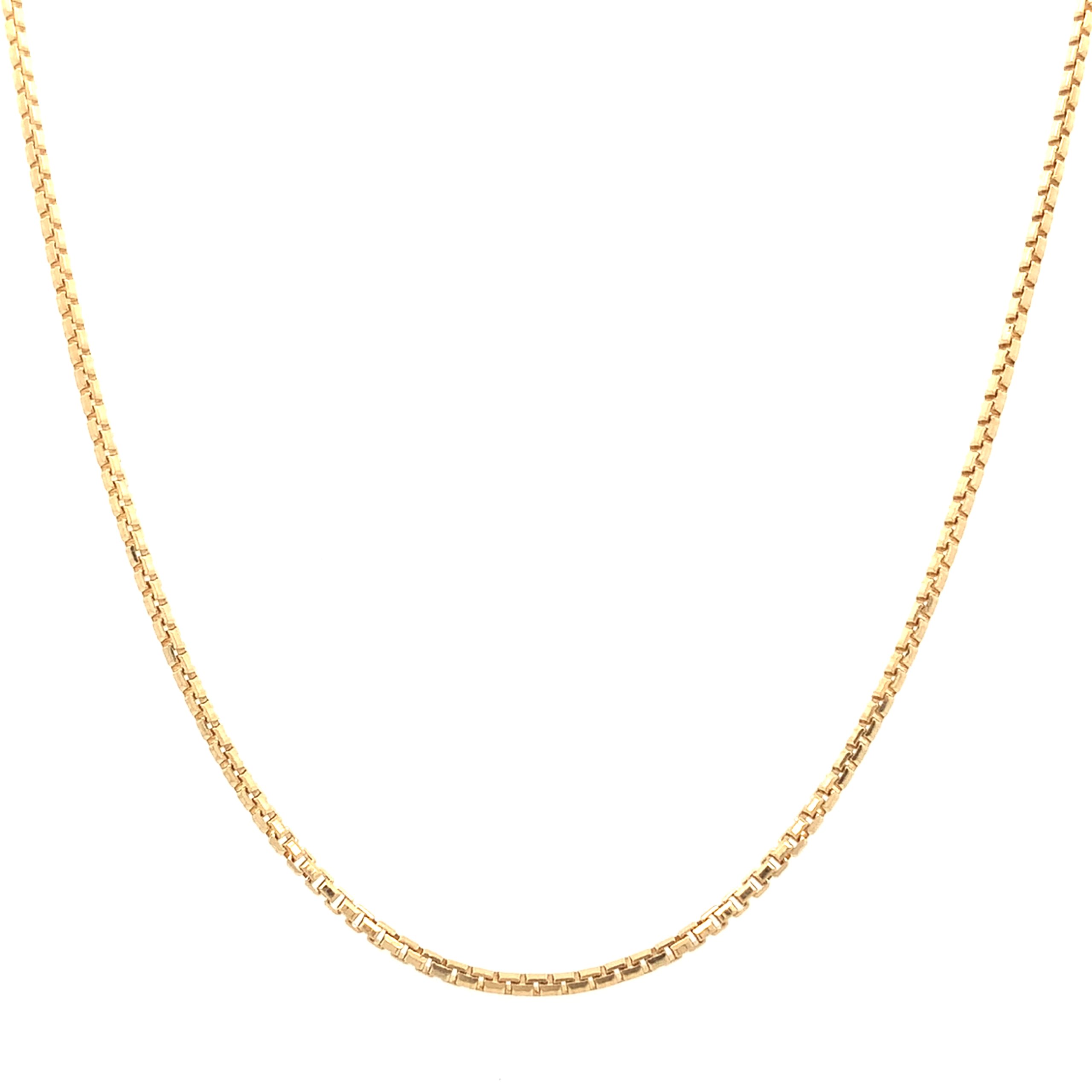 18ct yellow gold, box link chain Bolt ring fastening.