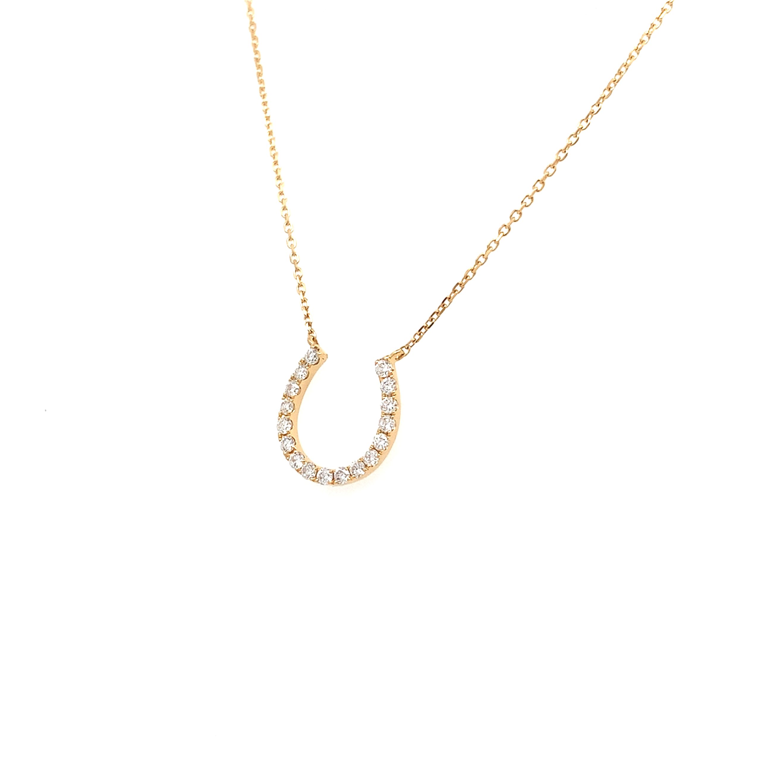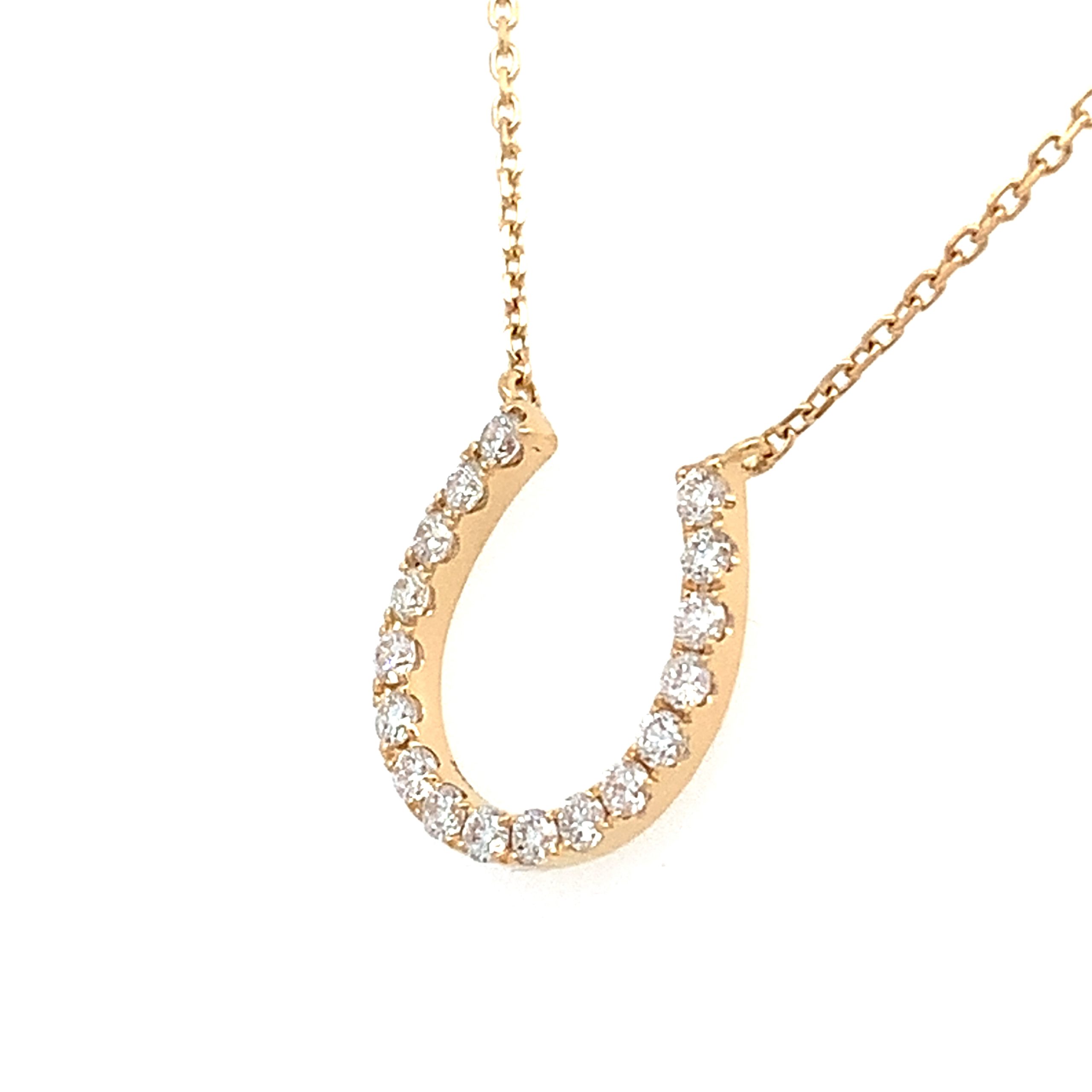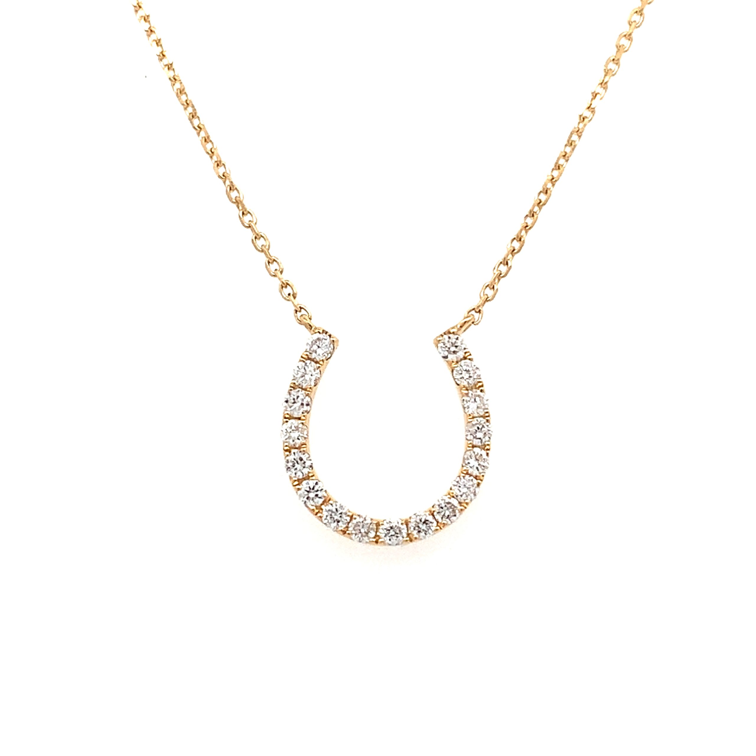 A pretty yellow gold horseshoe pendant pave set with round brilliant cut diamond on a sparkling fine trace chain.