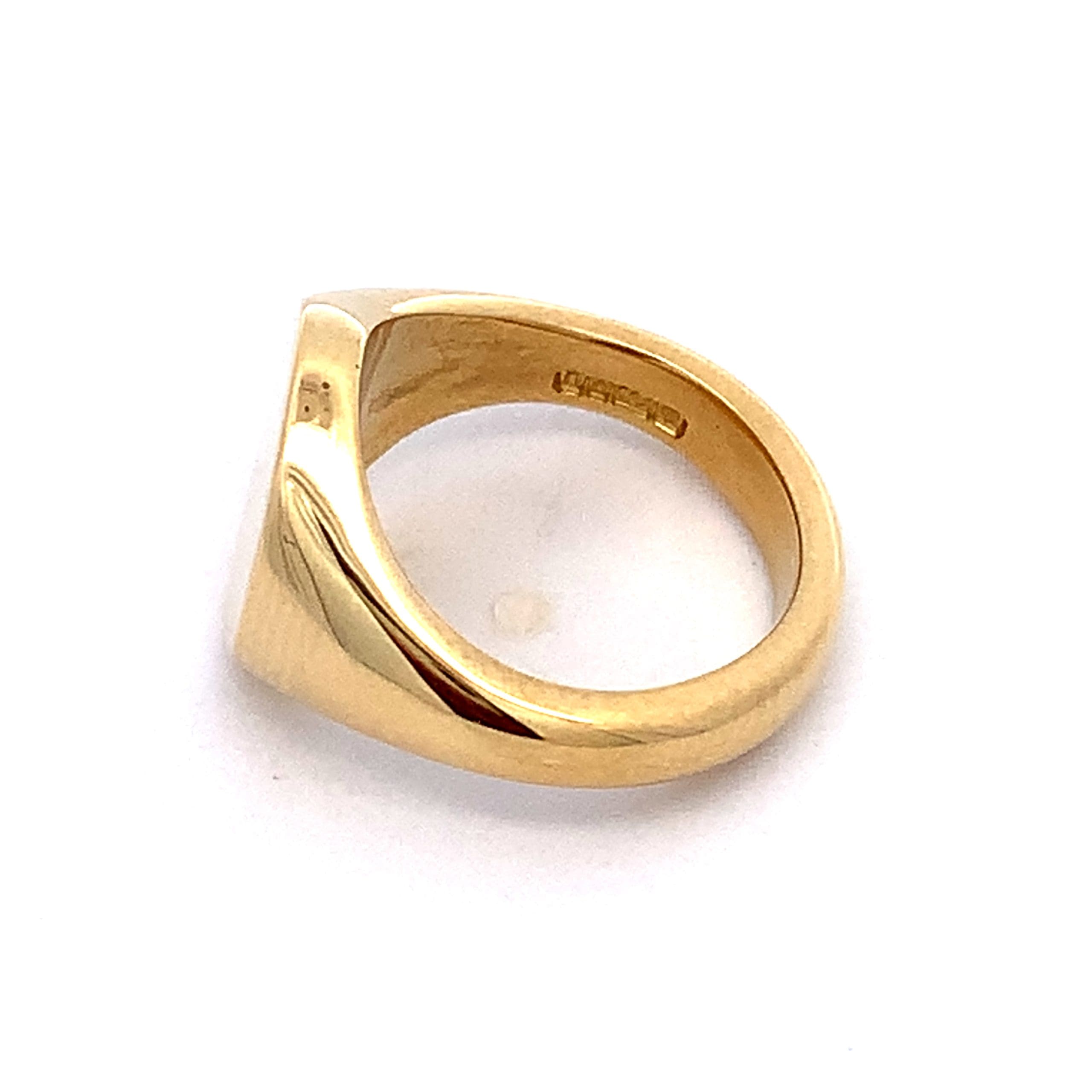 A superb heavy weight yellow gold signet ring with a plain round top – perfect for engraving.