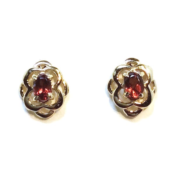 Traditionally styled claw set oval Garnet stud Earrings with scroll backs and posts.Metal: 9 Carat Yellow GoldDate: ModernDimensions: 9 x 8 mmGift Boxed
