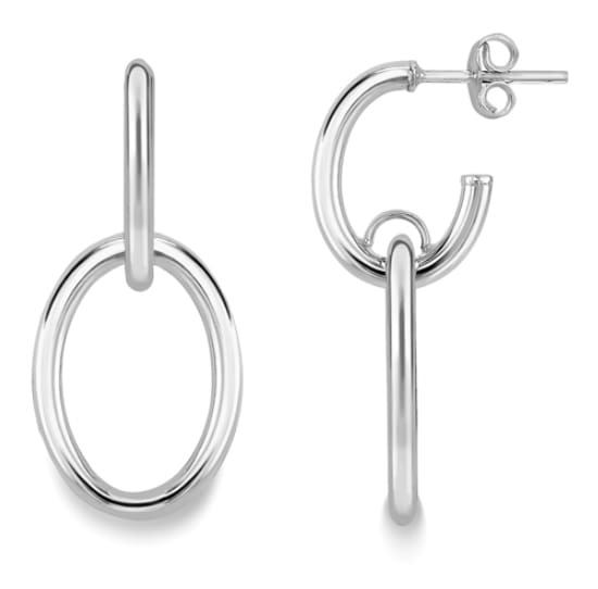 Celebrate a special occasion with these 9 carat white gold drop earrings with attractive oval links.  Made with 3/4 hoops fitted with posts and scroll backs.