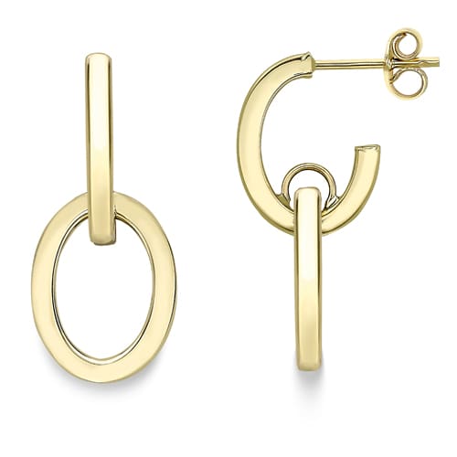 Celebrate a special occasion with these 9 carat yellow gold drop earrings with attractive oval links. Made with 3/4 hoops fitted with posts and scroll backs.