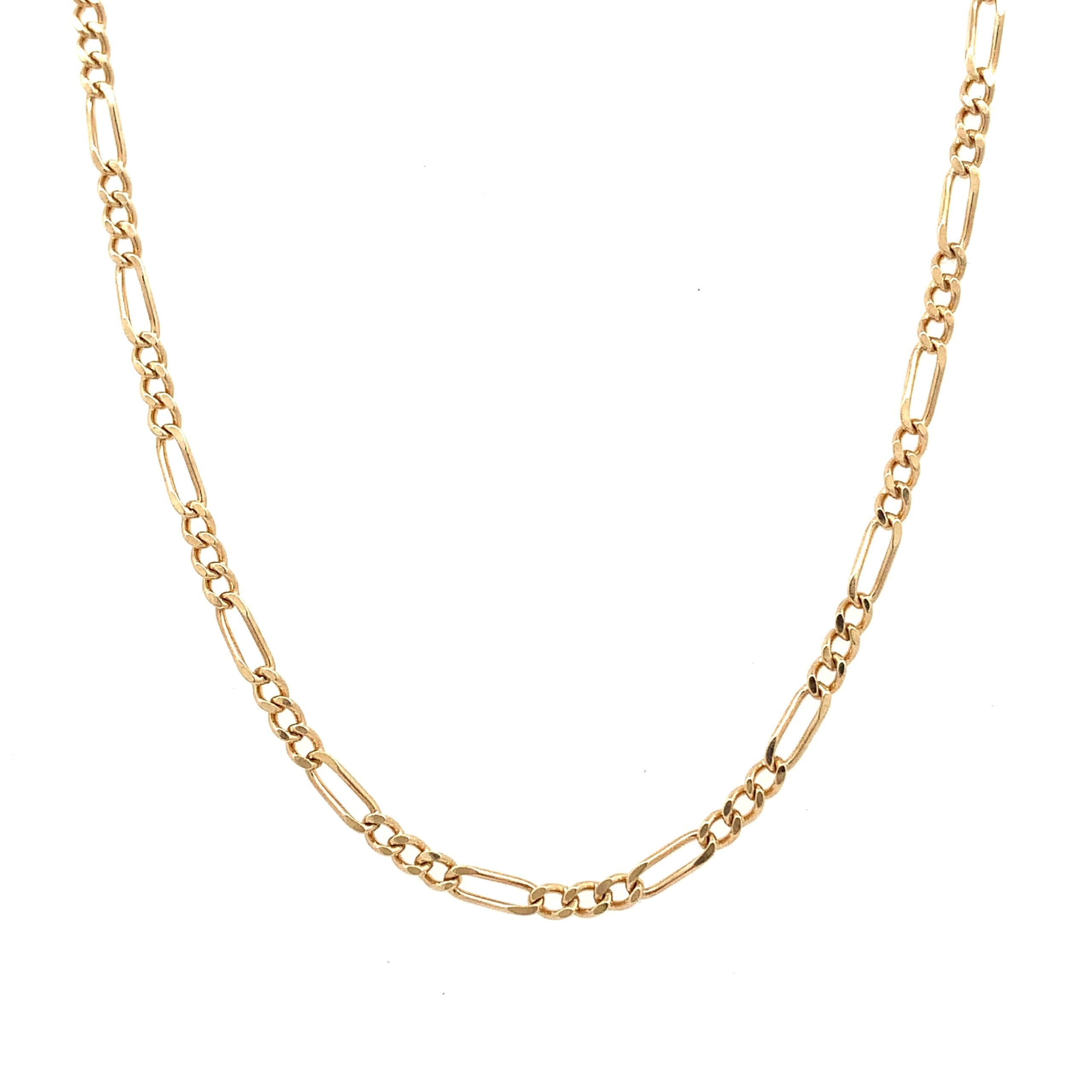 A classic 9ct yellow gold figaro chain with a bolt ring clasp.