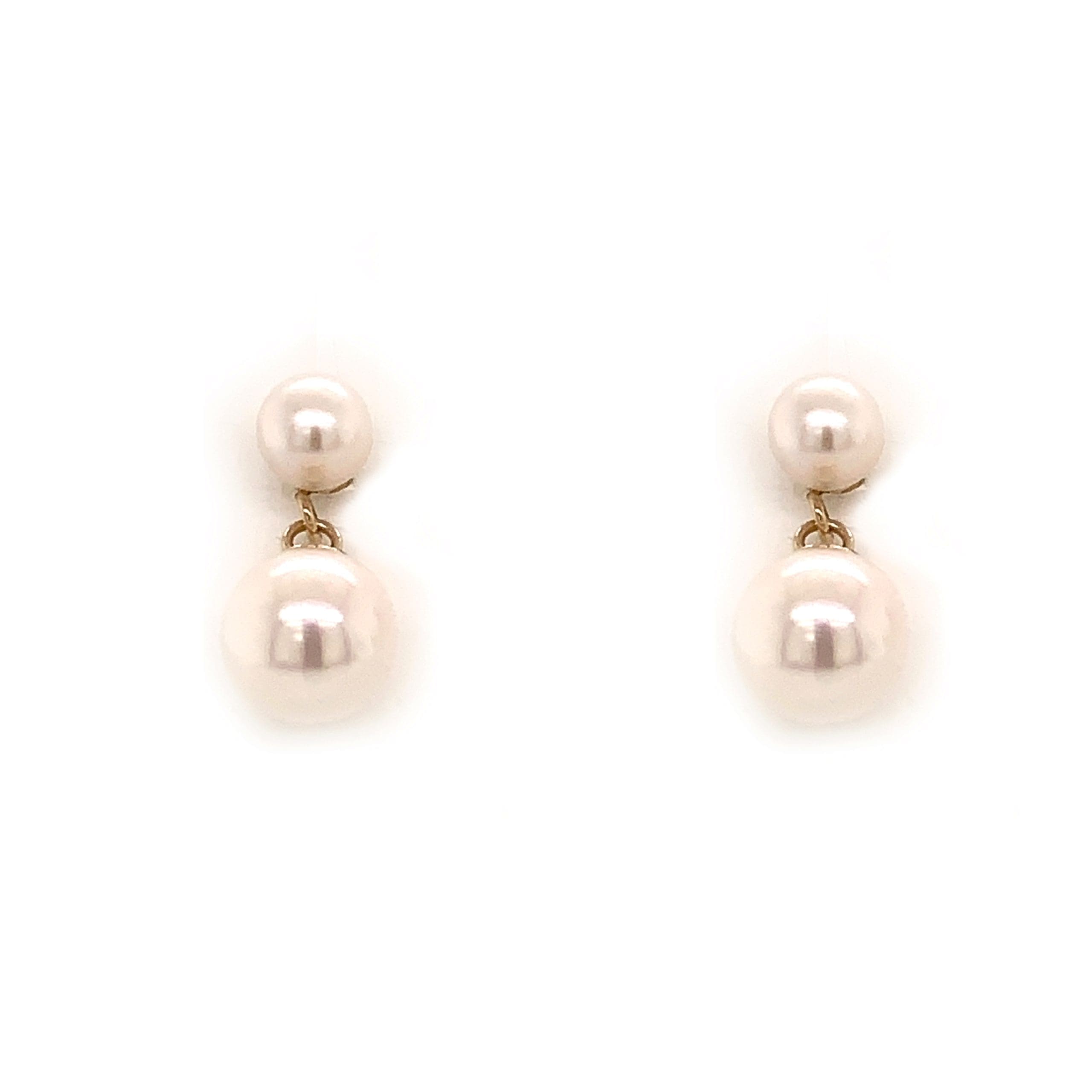 Two white freshwater pearls linked together in 9 carat gold with post and butterfly backs