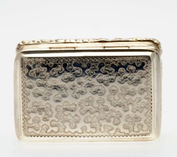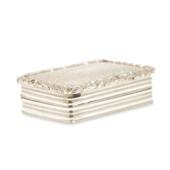 A George III silver snuff box. Assayed in London in 1815 by maker Charles Price.Curved form with ribbed edges and hand engraved borders.