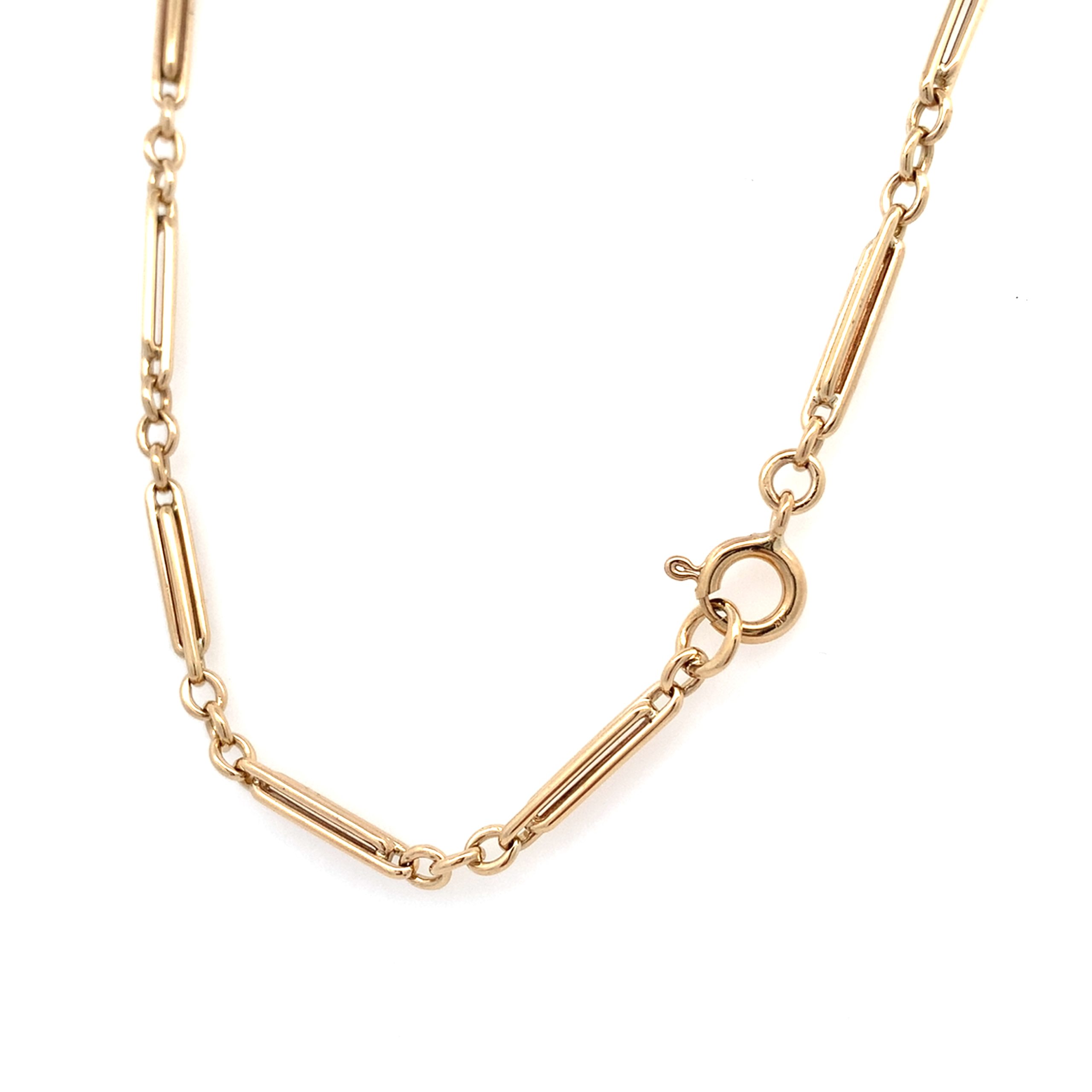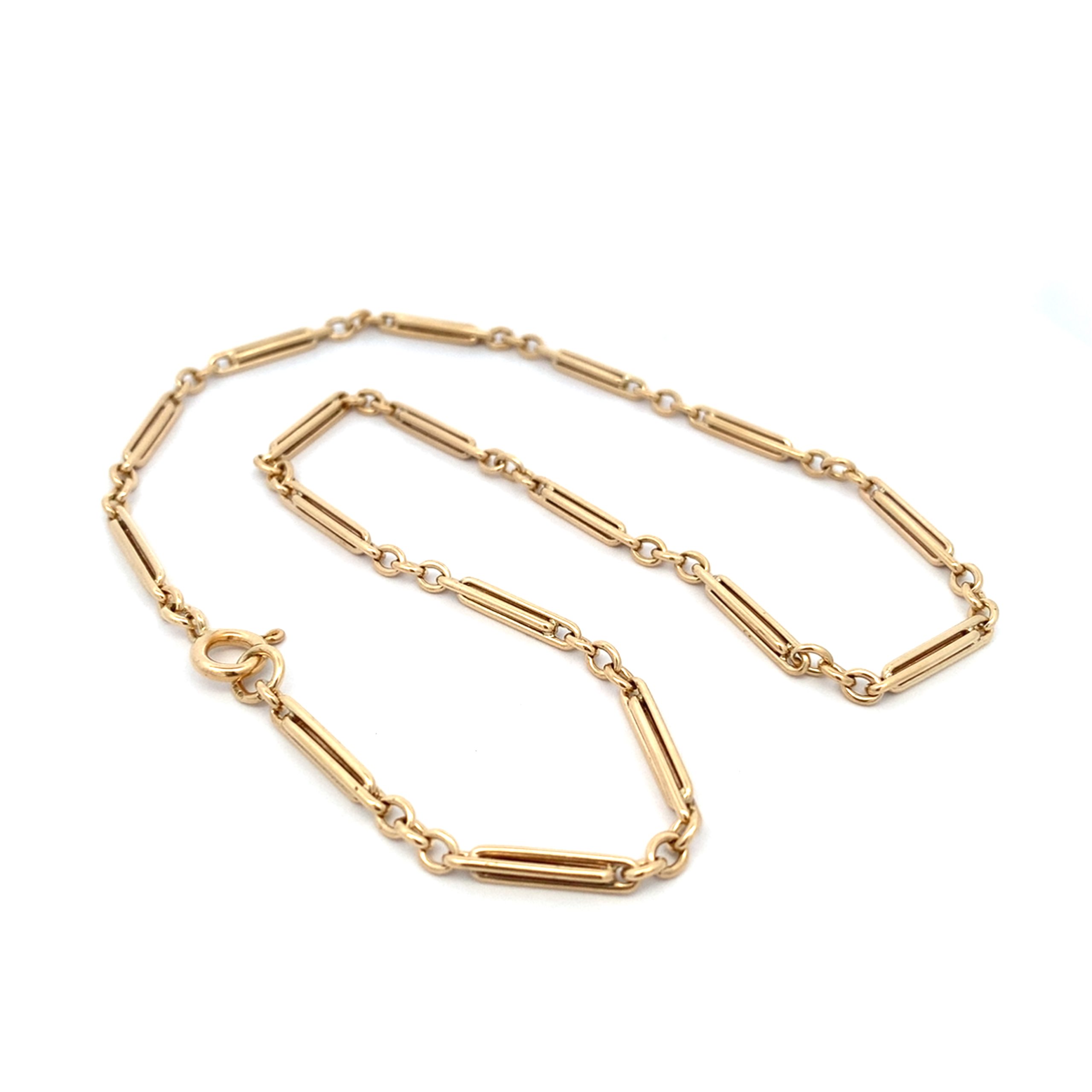 A lovely 9ct yellow gold chain with double trombone links and a bolt ring fastening.