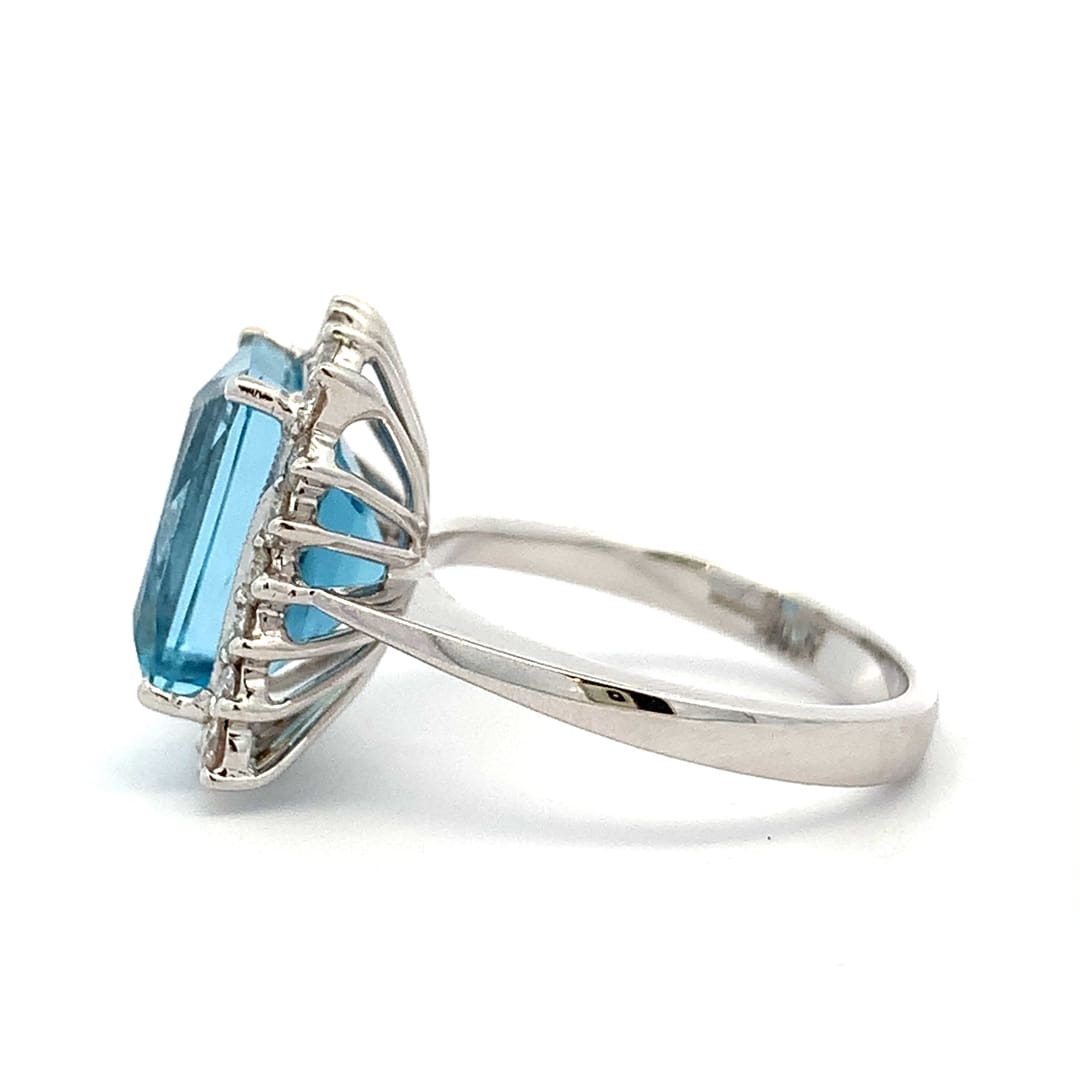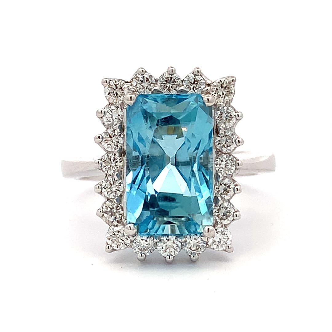 An attractive 18 carat white gold aquamarine and diamond dress ring.