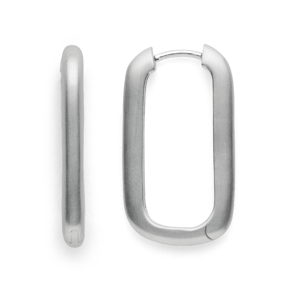 These elegant hoop earrings made of satin matt 925/- sterling silver impress with their stylish oval design. The rounded corners give the piece of jewellery that certain something, so that the unique design becomes a real eye-catcher. The built-in hinge guarantees that the earrings are easy to put on and take off and are comfortable to wear.