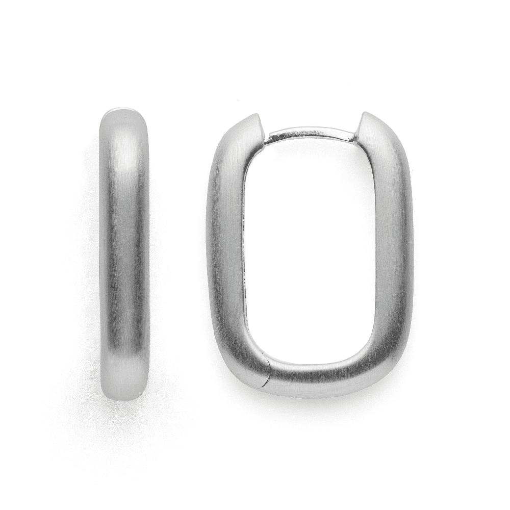 These elegant hoop earrings made of satin matt 925/- sterling silver impress with their stylish oval design. The rounded corners give the piece of jewellery that certain something, so that the unique design becomes a real eye-catcher. The built-in hinge guarantees that the earrings are easy to put on and take off and are comfortable to wear. Also available in other sizes.