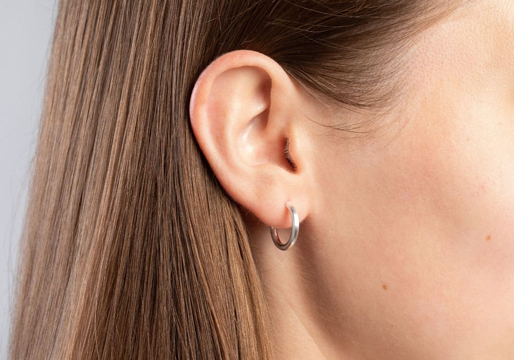 The modern hoop earrings made of matted 925/- sterling silver impress with their stylish and timeless design. A must-have for every jewellery lover! Also available in other sizes.