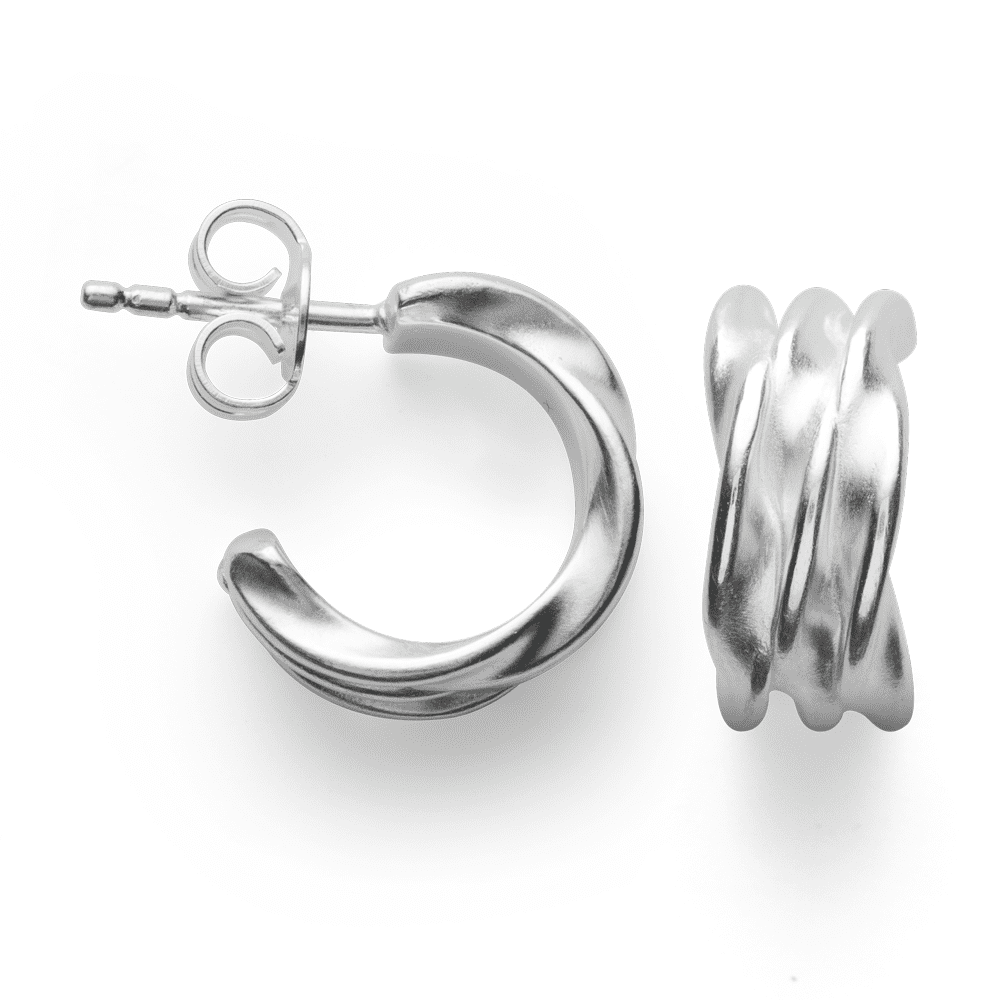 Sporty, elegant hoop earrings made of matt 925/- sterling silver with a distinctive surface structure in a twisted look.