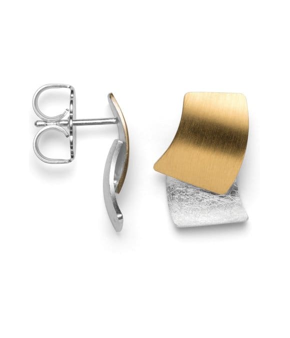 The movement of a flowing ribbon captured in silver and yellow gold plate with contrasting scratch-matt and satin surfaces.