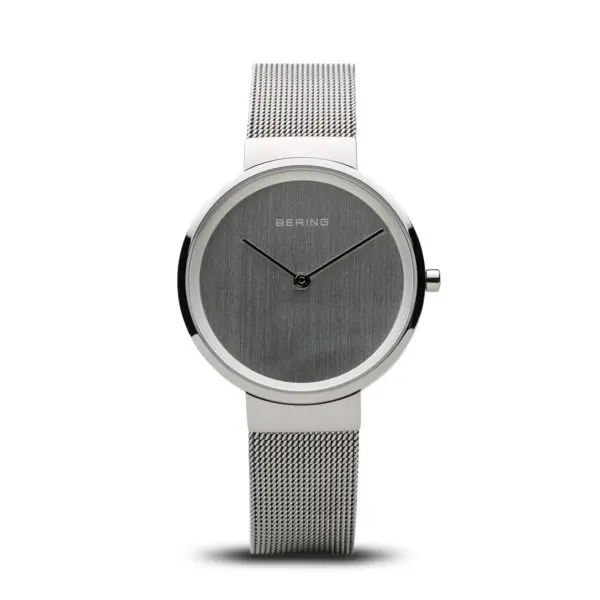 The polished silver coloured stainless steel case, made of pure, high quality, medical-grade stainless steel (316L), in combination with the silver coloured Milanese mesh strap, provides the classic BERING look. The minimalist dial protected by crystal clear and scratch-resistant sapphire crystal, gives the watch a subtle touch of elegance.