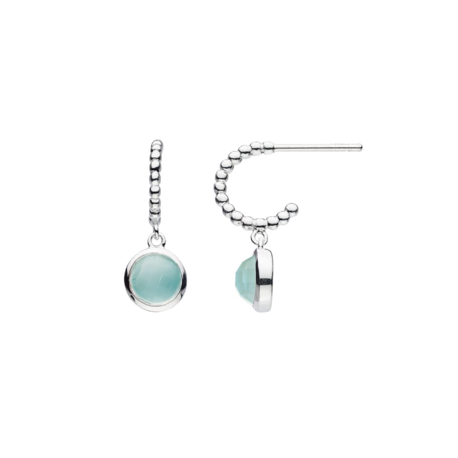 Pretty beaded 3/4 hoop earrings with faceted blue chalcedony drops.