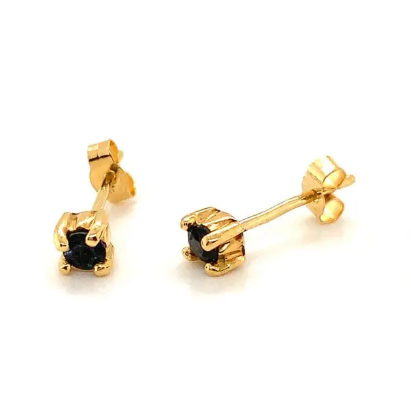 Round cut rich blue sapphires, claw set in simple four claw settings. With scroll back fittings.