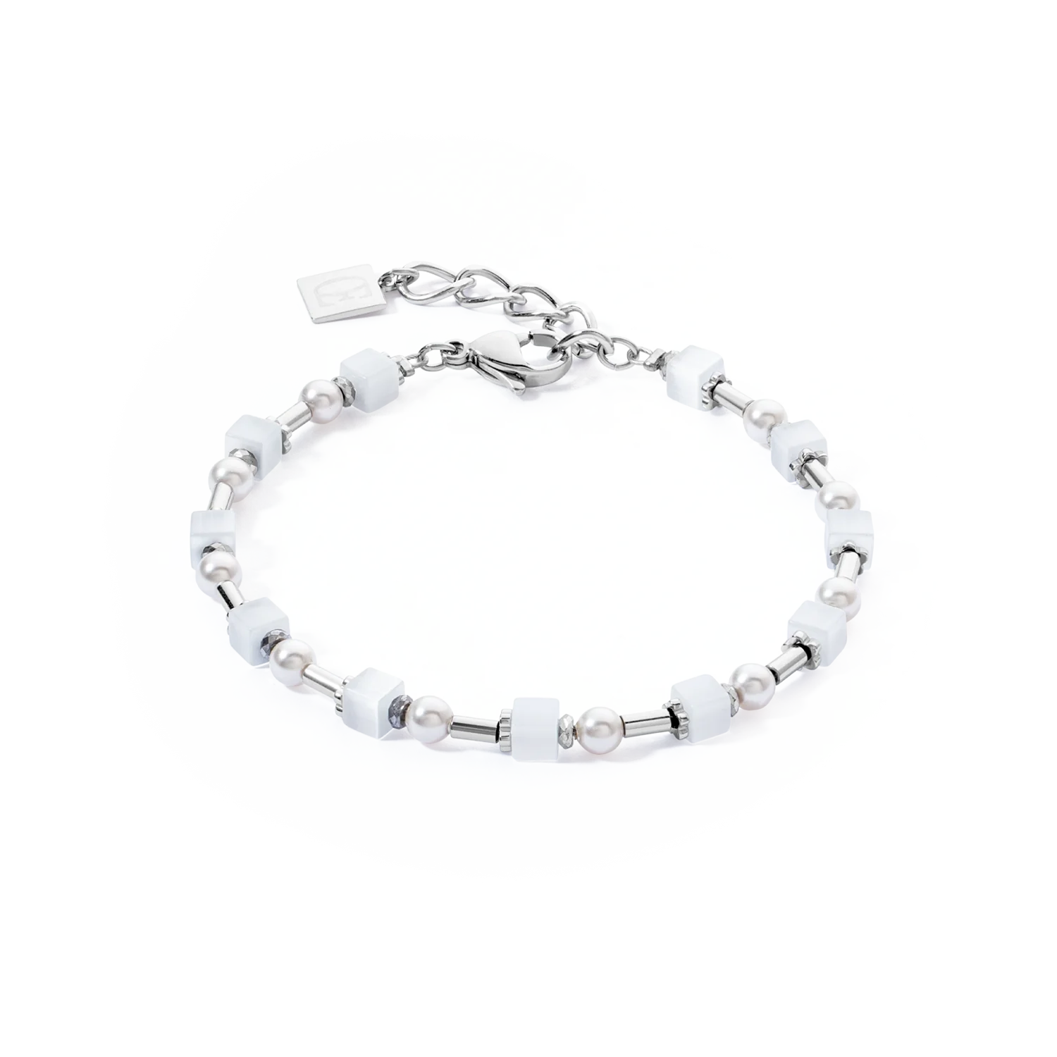Delicate bracelet in a cubes & pearls mix design. White mini cubes and fine crystal pearls combine to create a light tone-on-tone piece of jewellery for every day.