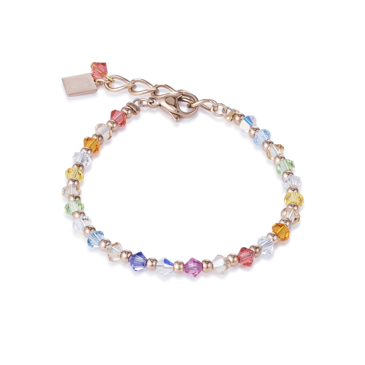 A sparkly multi coloured bracelet with Swarovski crystals and rose gold plated stainless steel.