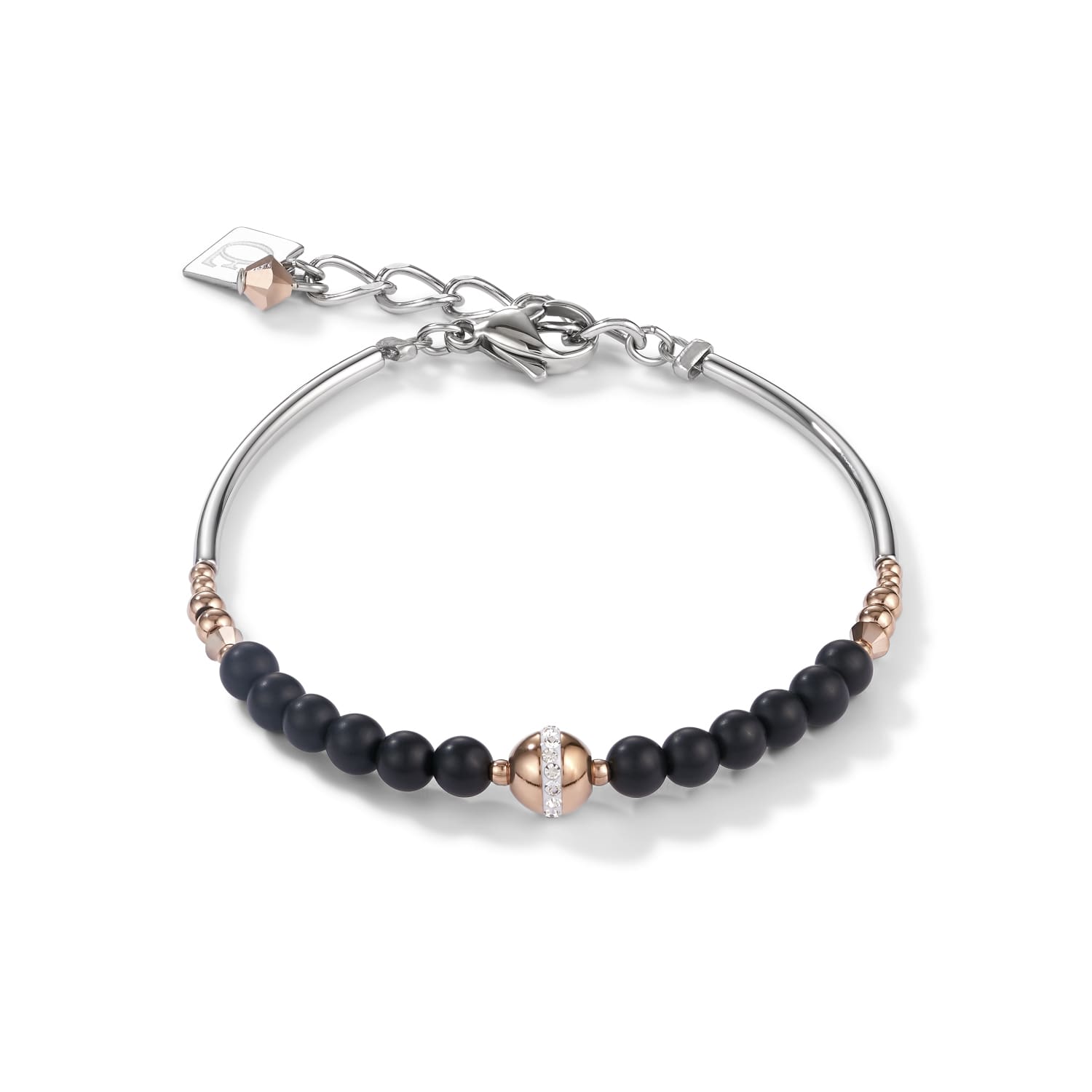 Deep black. The height of elegance. A delicate bracelet handmade from onyx and rose gold plated stainless steel beads set with pavé-set crystals.