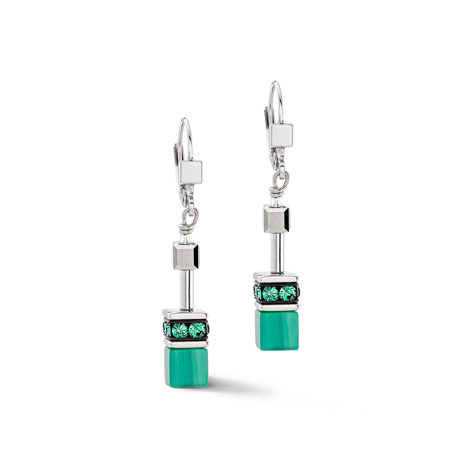 GeoCUBE® Iconic earrings silver-green – Fresh chic in cool green The GeoCUBE® Iconic earrings silver-green are the ideal complement to the necklace of the same name. With their cool, fresh green colour and elegant silver accents, these earrings add a touch of modern sophistication to any outfit. Whether for everyday wear or special occasions, these earrings provide a stylish colour accent that is both timeless and trendy.