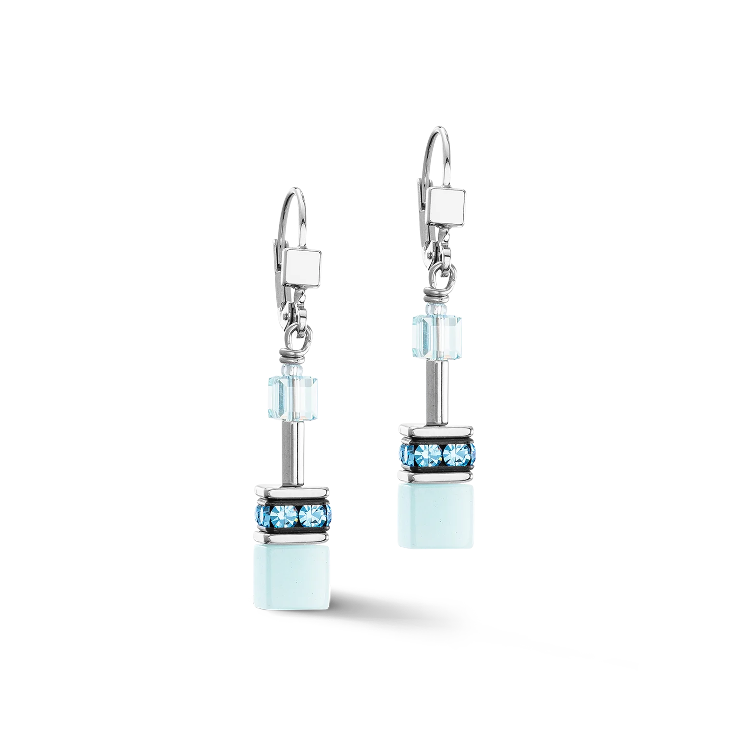 GeoCUBE® Iconic Mono Silver Earrings Ice Blue: Delicate winter freshness The GeoCUBE® Iconic Mono Silver Earrings in ice blue capture the cool elegance of a winter morning. The ice blue cubes shimmer subtly and add a fresh, stylish touch to your look. Perfect for every day or special occasions, these earrings make a subtle, elegant statement.