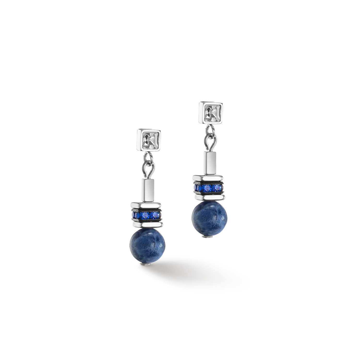 The Atlantis Spheres earrings in silver and blue make the perfect addition to the necklace and are a wonderful choice for any occasion.
