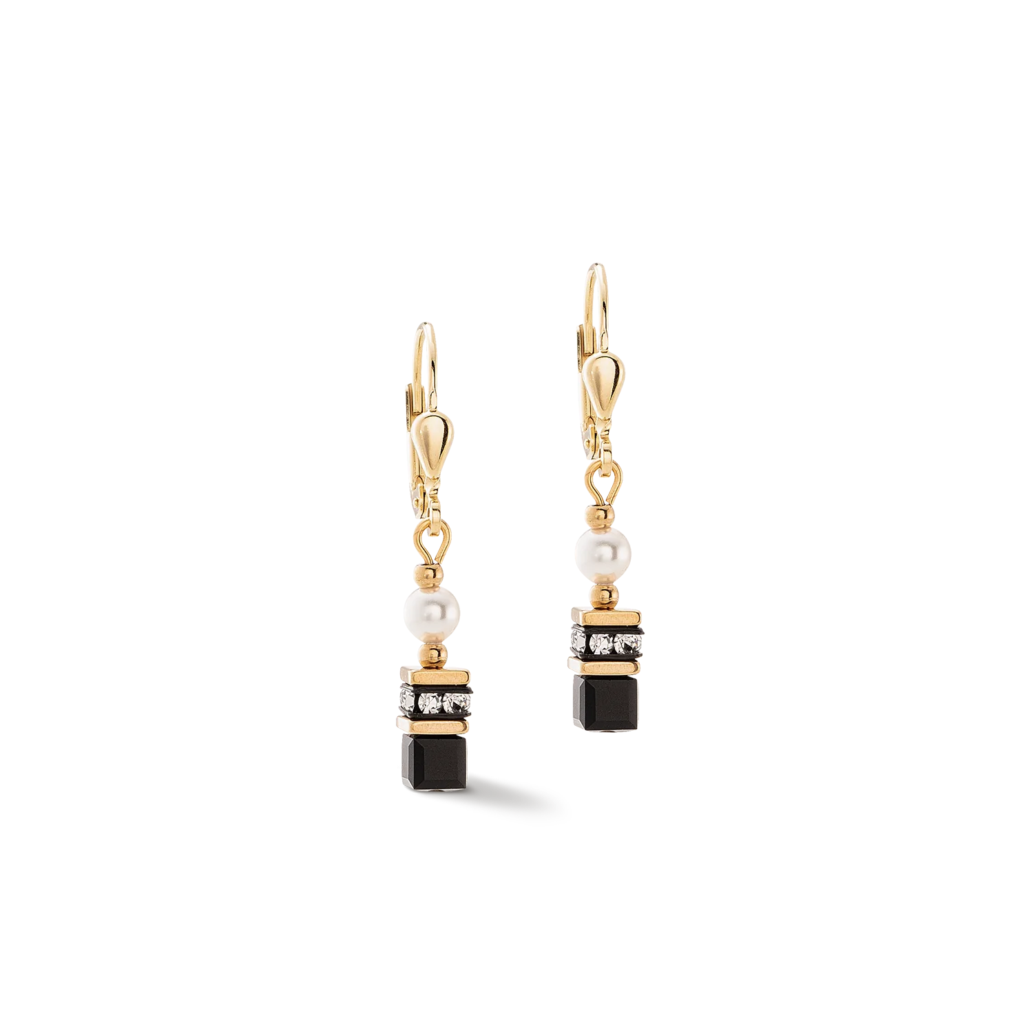 Sparkling Princess gold and black earrings – understated elegance with a sparkling accent The “Sparkling Princess” earrings in gold and black are the perfect addition to your festive wardrobe. These stylish earrings combine shiny black crystals with elegant pearls and fine gold-coloured details. The harmonious design gives the earrings a simple elegance that adds a luxurious touch to any outfit. Whether as a discreet everyday companion or a sparkling highlight for special occasions – the “Sparkling Princess” earrings are an indispensable accessory that will give your look that certain something. The practical hinged fasteners ensure a secure and comfortable fit.