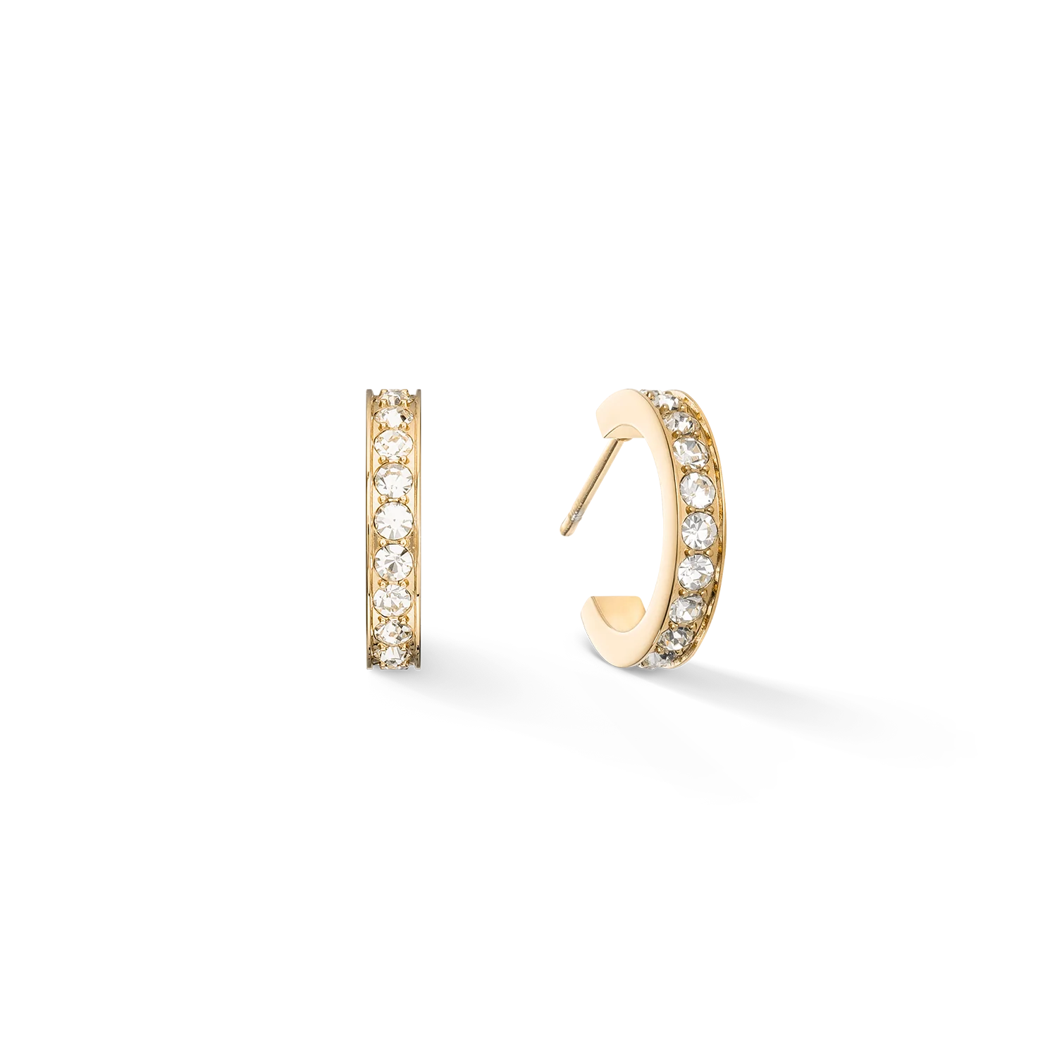 Our timeless hoop earrings are immensely popular and now come in a smaller, thinner design. Set with sparkling clear crystals. Perfect for everyday wear or the earring stacking trend. Matching bangle and rings available.