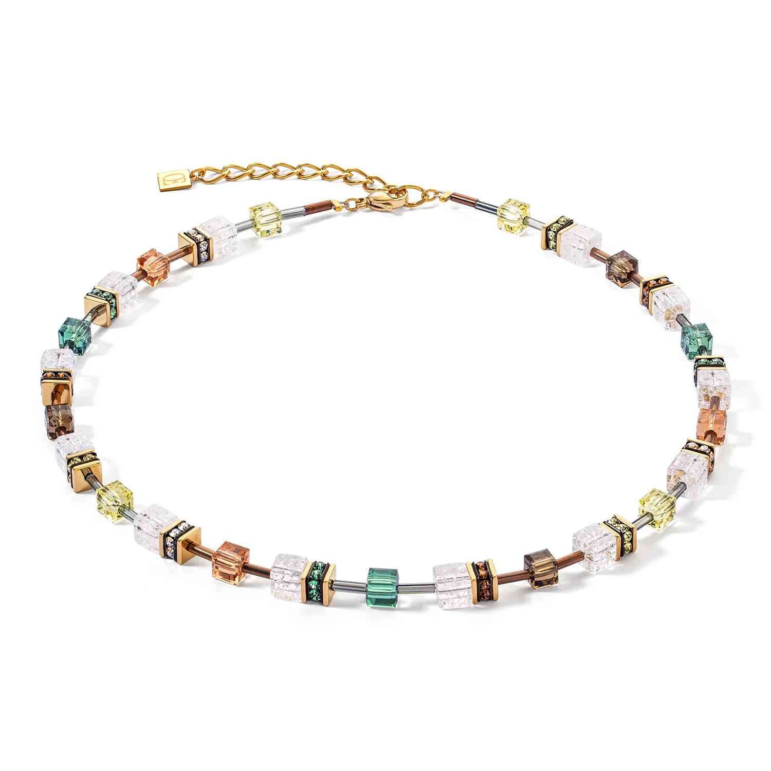 GeoCUBE® Iconic Nature necklace brown and white in gold: naturalness meets glamour Discover the perfect balance between nature and elegance with the GeoCUBE® Iconic Nature necklace in brown and white and gold. This extraordinary necklace combines the soft, earthy tones of crystals with the fascinating, cracked rock crystal cubes that give the piece of jewellery a unique, natural texture. Inspired by the current colour trend of grounded glamour, this necklace combines warm earthy tones with the luxurious shine of gold. It is not just a piece of jewellery, but an expression of style awareness and a connection with nature. Whether for everyday wear or special occasions, this necklace adds a subtle yet impressive touch to any outfit. Experience the magic of nature combined with glamorous design – with the GeoCUBE® Iconic Nature necklace brown and white in gold. A must-have for anyone who wants to combine elegance and earthiness in a stylish way.
