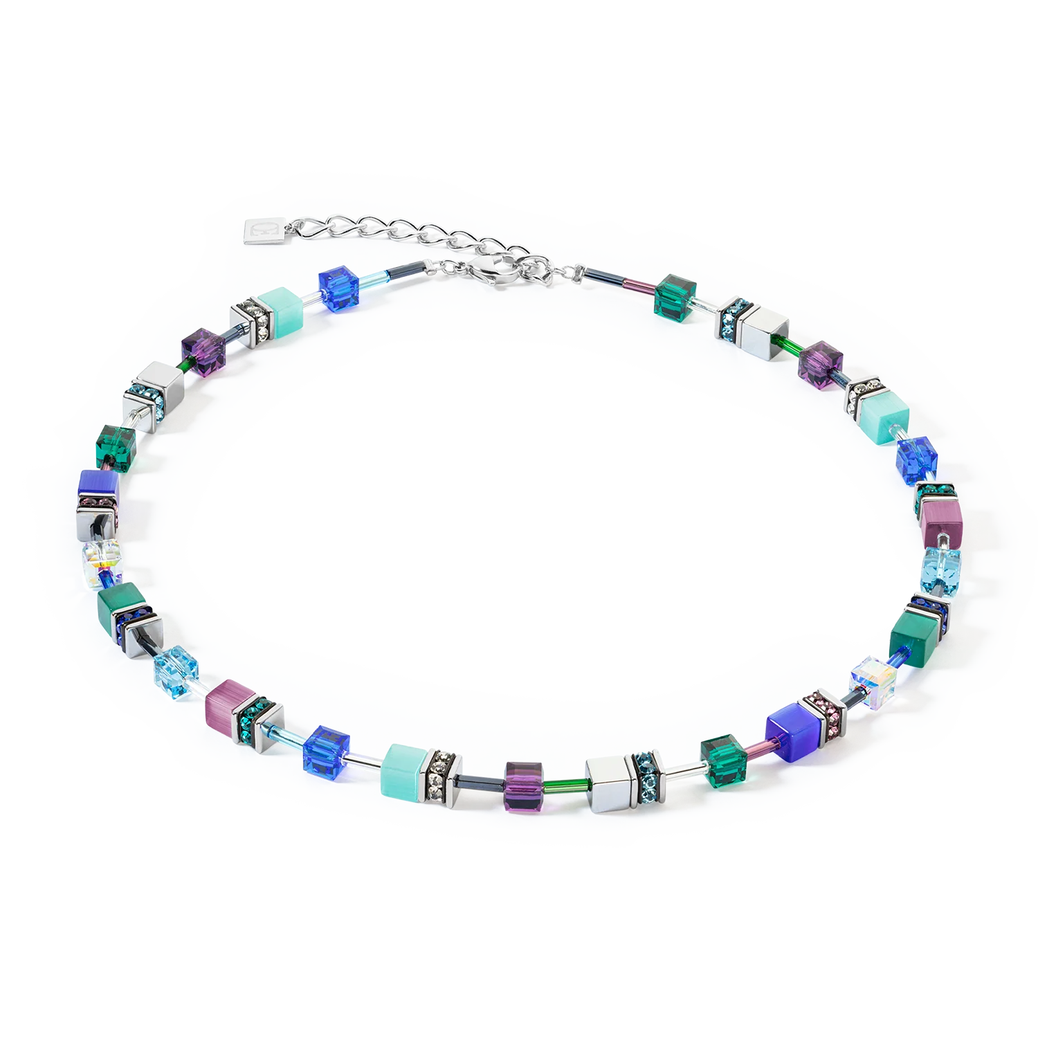This GEOCUBE® Iconic necklace features a perfect combination of turquoise and purple elements finished off with silver details. Its gorgeous colours and carefully chosen details make it the ideal necklace for any day and any season.