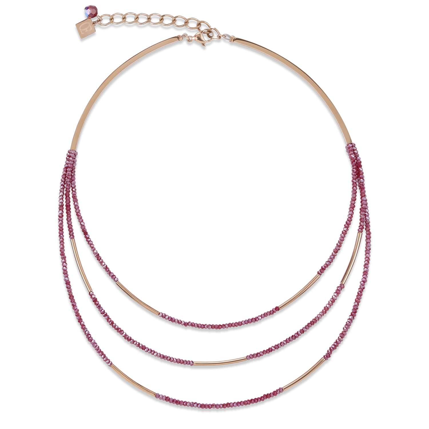 This beautiful three row faceted glass bead necklace on rose gold plated stainless steel