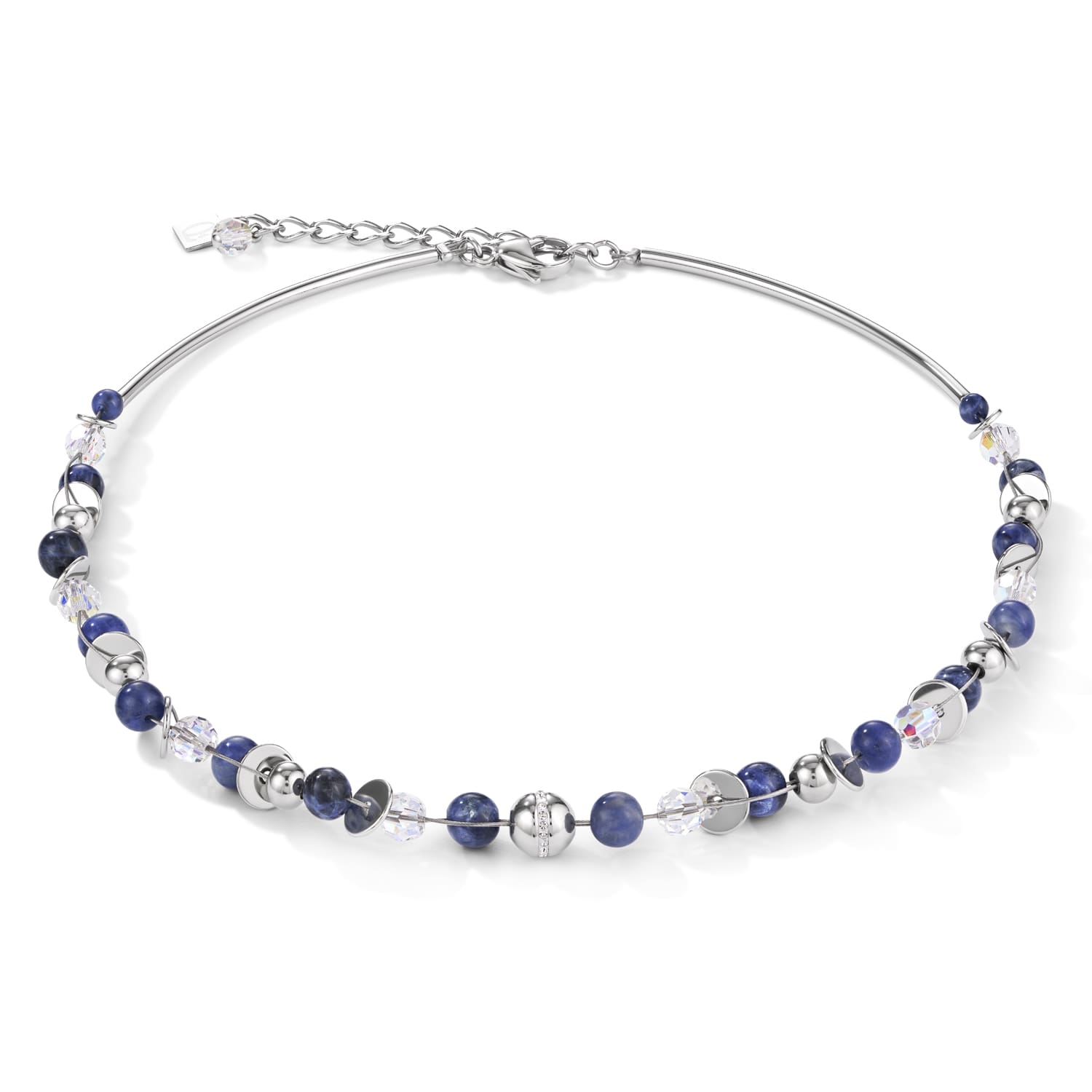 Twisted pearls: Sodalite, pavé-set crystals and stainless steel brought together in an extraordinary composition.