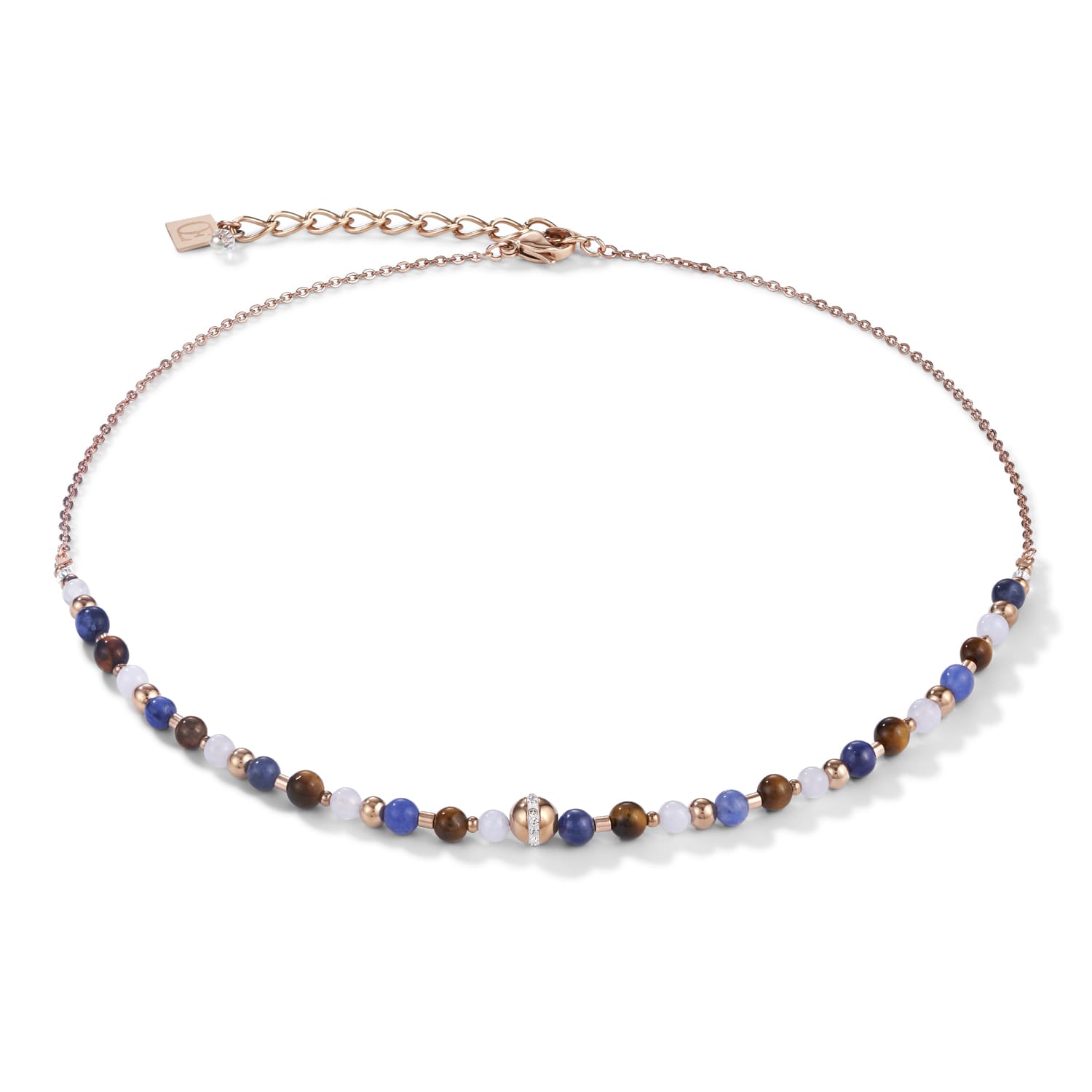 A beauty that will warm your heart: a fine necklace with real stones such as chalcedony and sodalite, in shades of blue and brown.