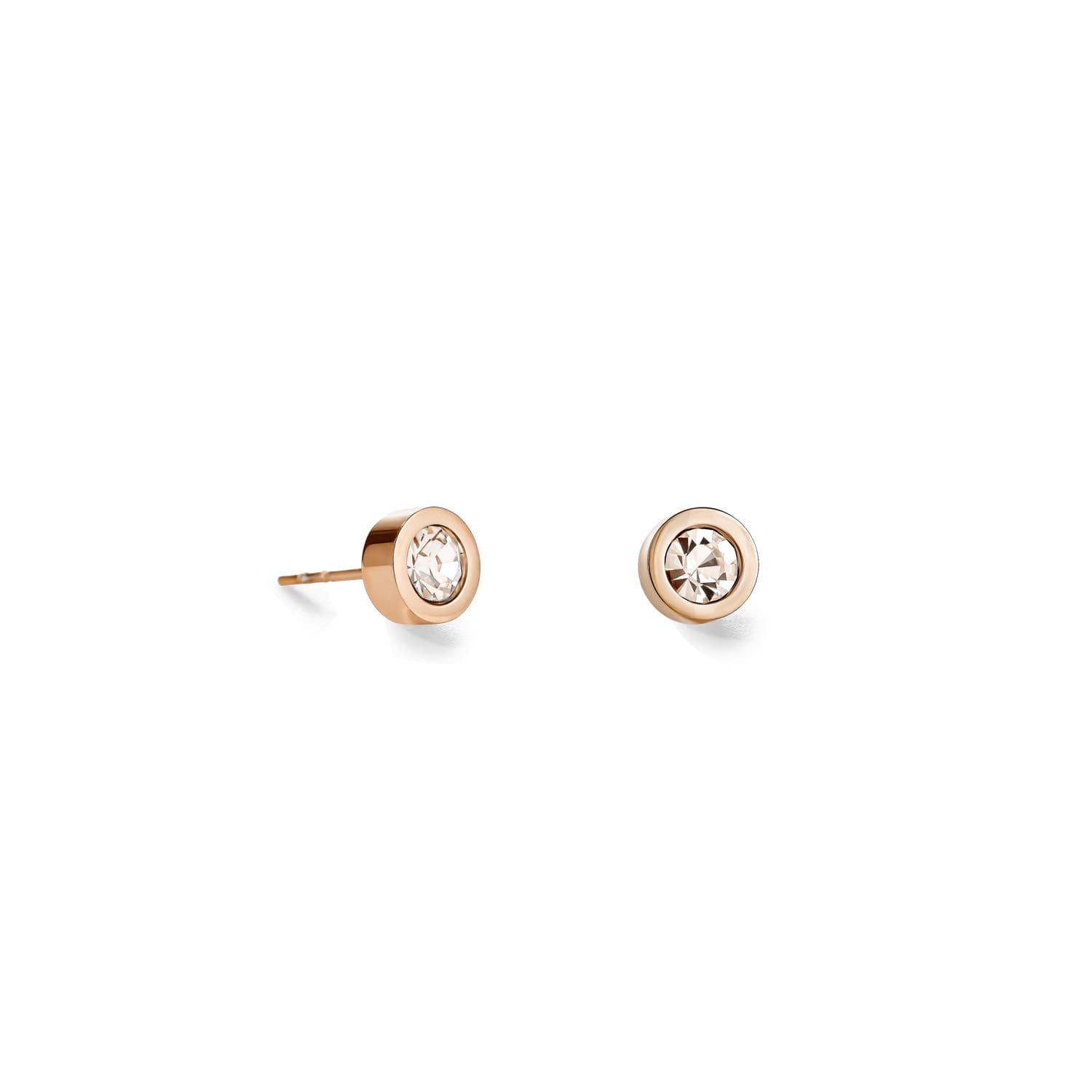 A sparkling pair of crystal glass stud earrings in rose gold plated stainless steel.