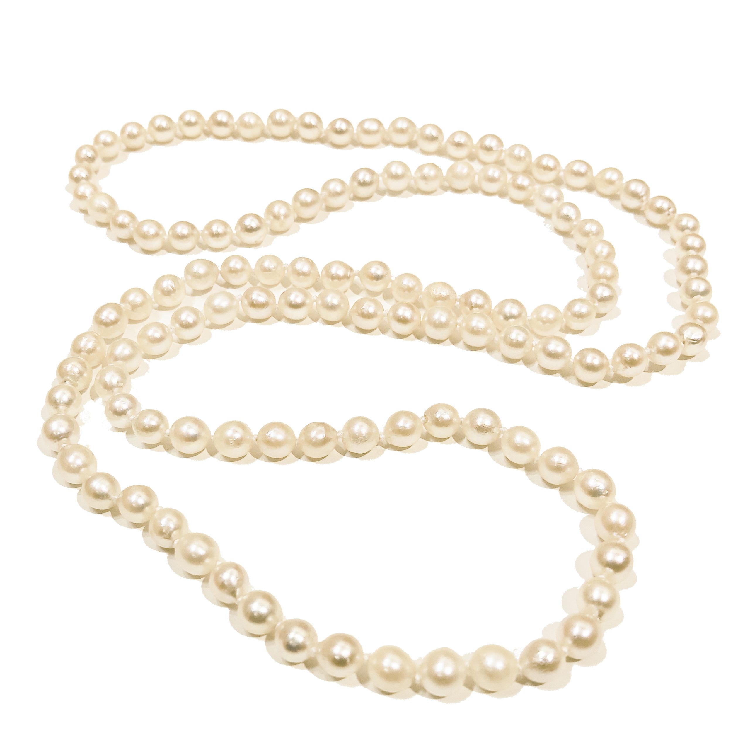 A simple knotted string of beautiful freshwater pearls with no clasp.