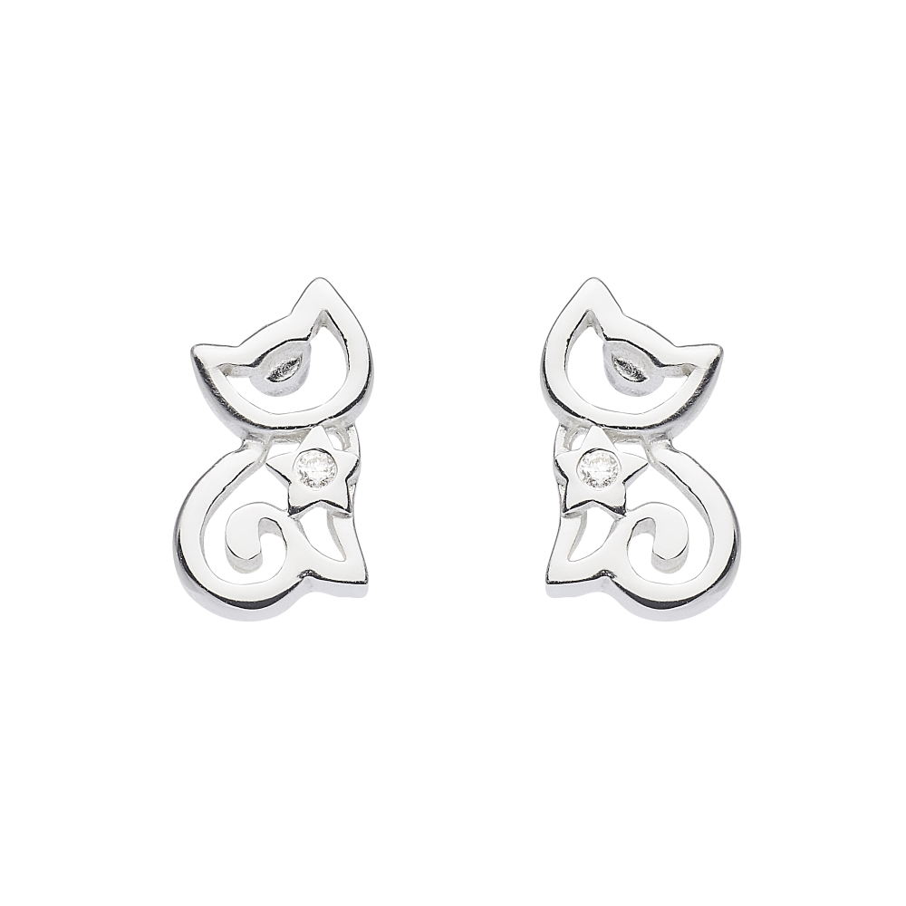These sterling silver stud earrings are crafted into a playful cat, complete with a star on its chest, set with a cubic zirconia stone.