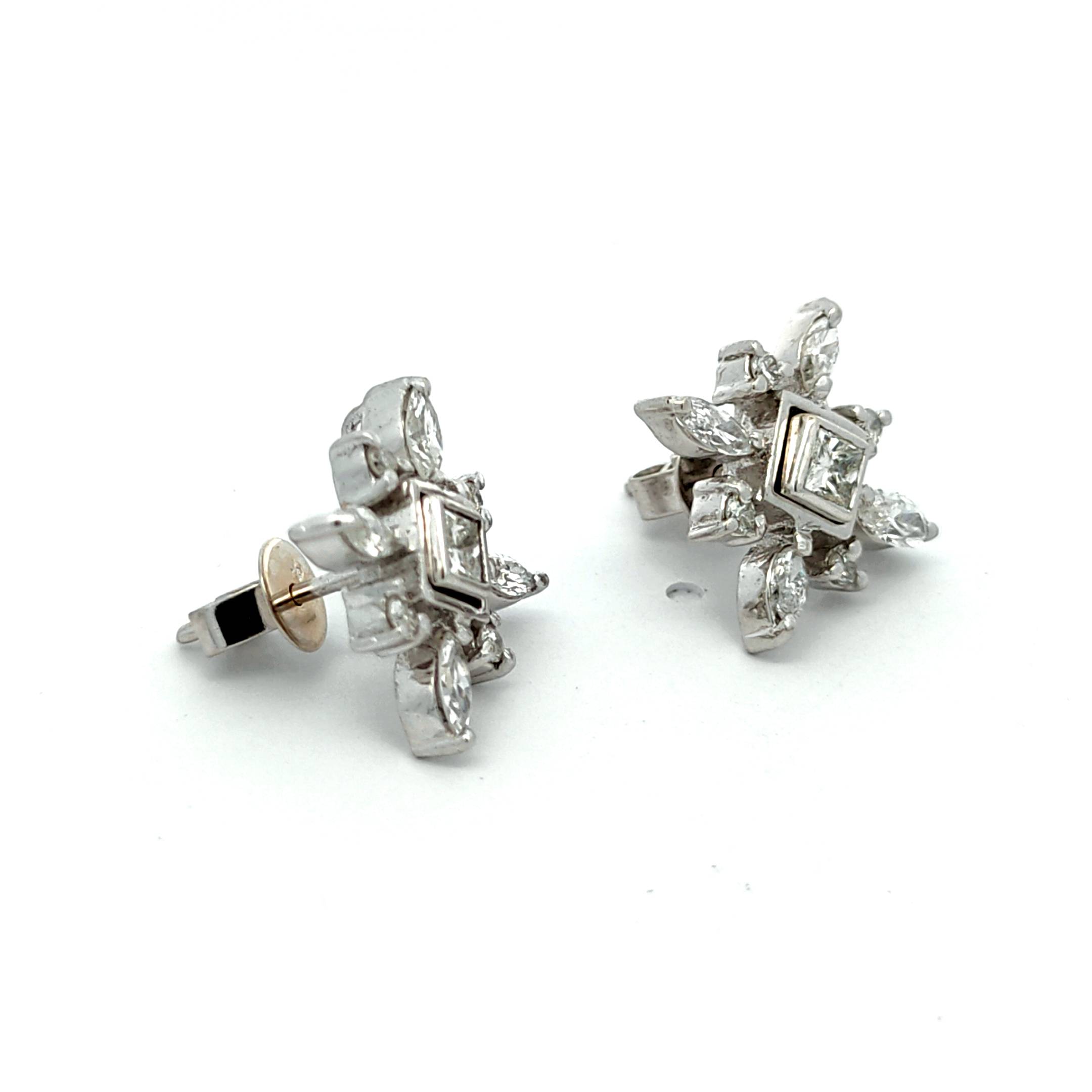 Princess cut diamond rub-over studs with stunning removeable snow flake design outer jackets for special occasions.