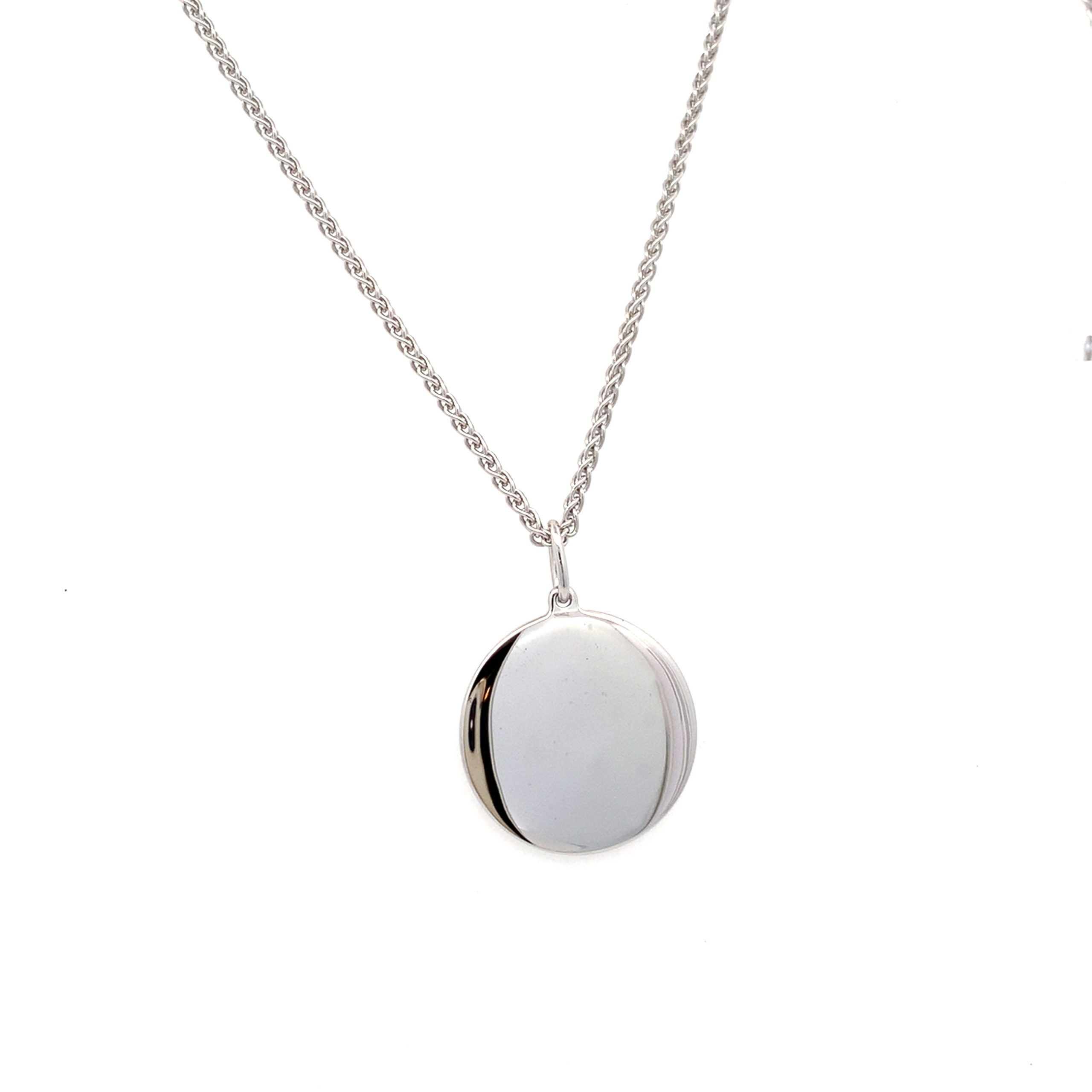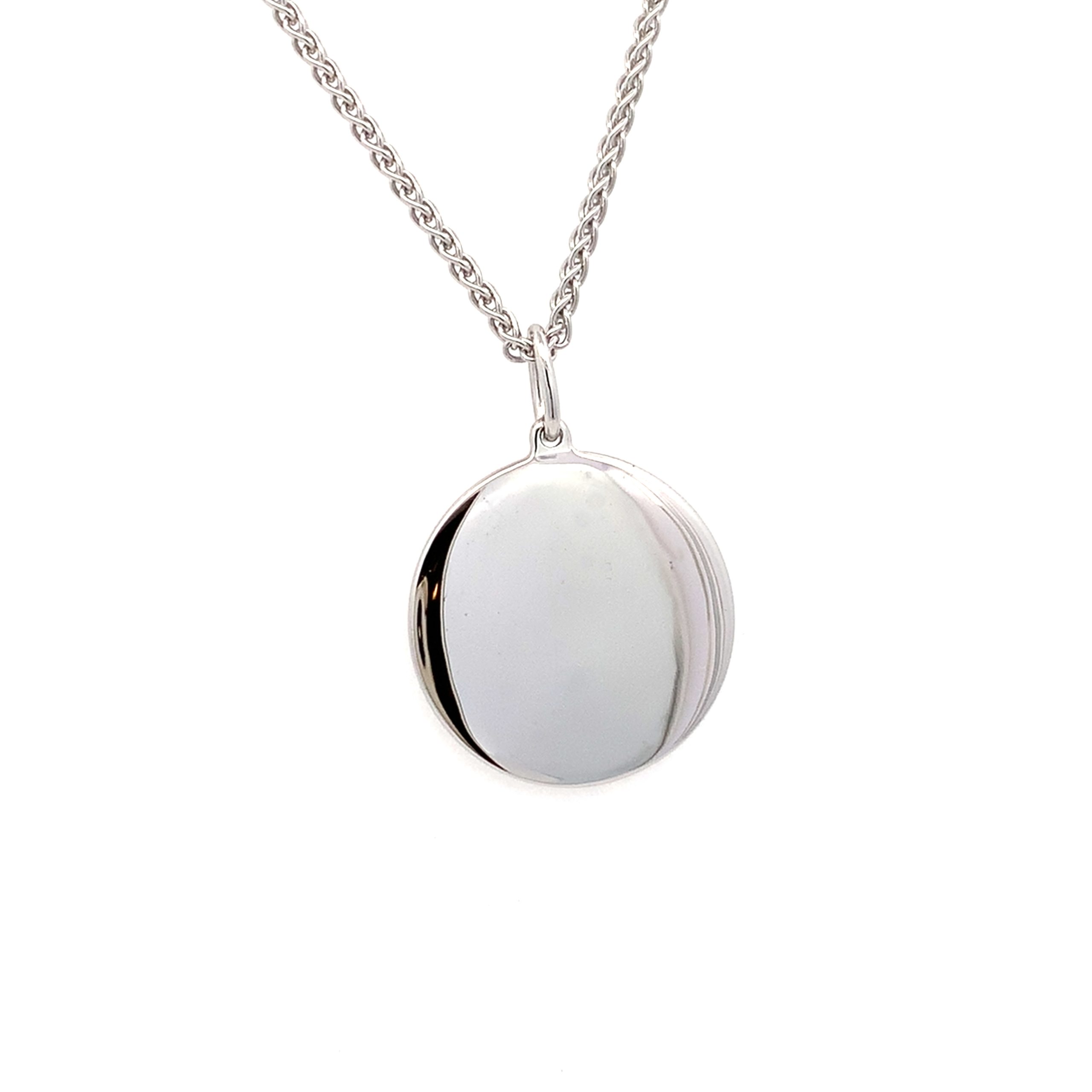 A simple sterling silver polished round pendant perfect for engraving.